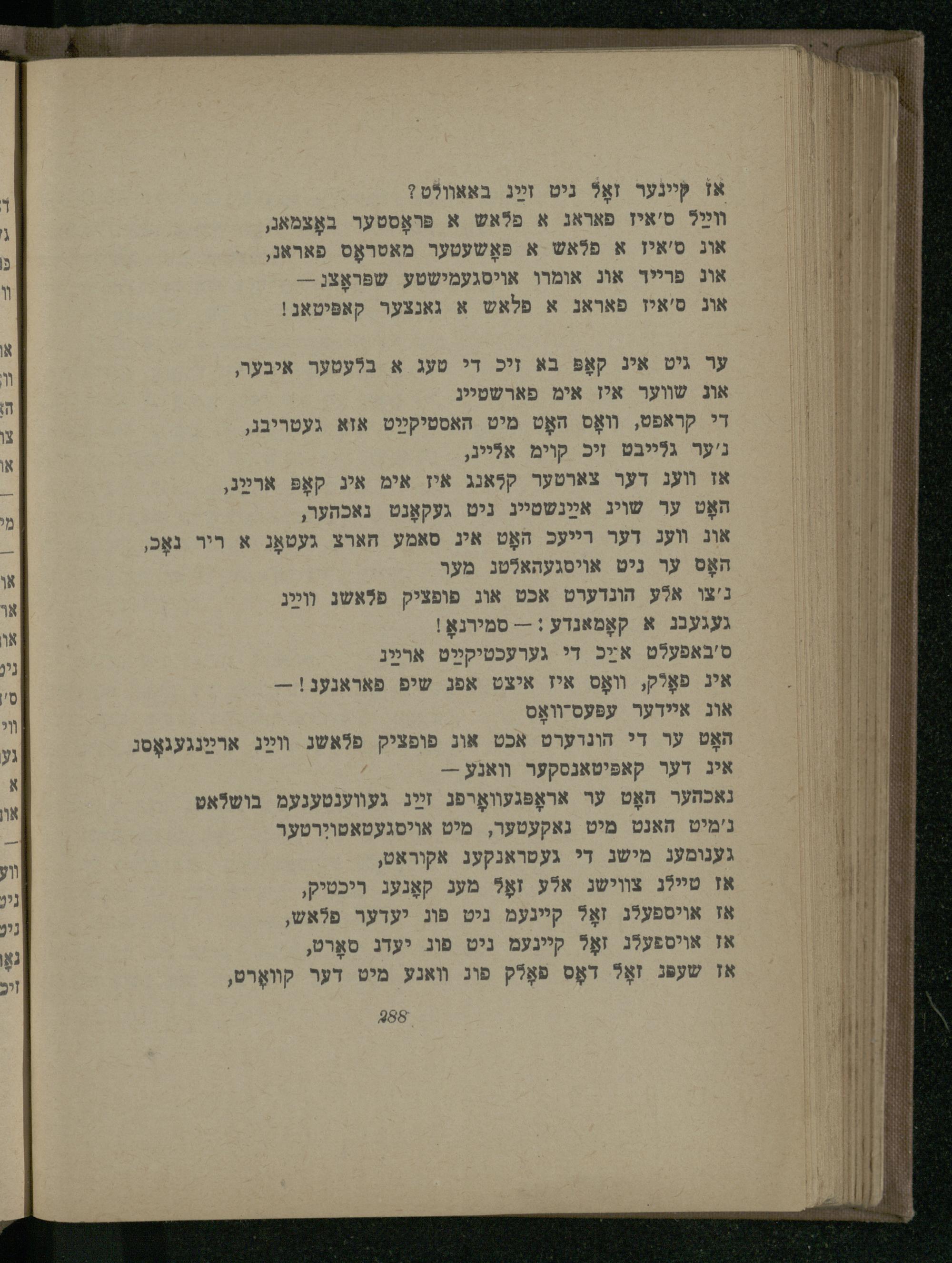 נאכהער האָט ער אראָפּגעװאָרפג זײַג געווענטענעמ בושלאט נ'מיט האנט מיט נאקעטער, מיט אויסגעטאטוירטער גענומעג מישג די געטראנקעג אקוראט,