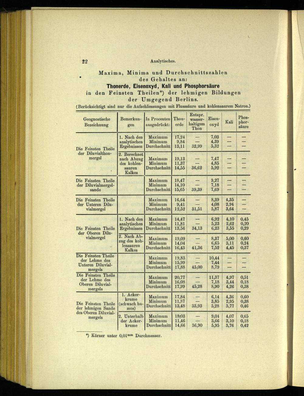 in den Feinsten Theilen*) der lehmigen Bildungen der Umgegend Berlins .