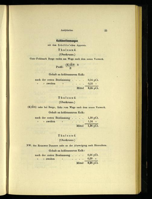 (K)HS) nahe bei Berge, links vom Wege nach dem neuen Vorwerk. Gehalt an kohlensaurem Kalk:
