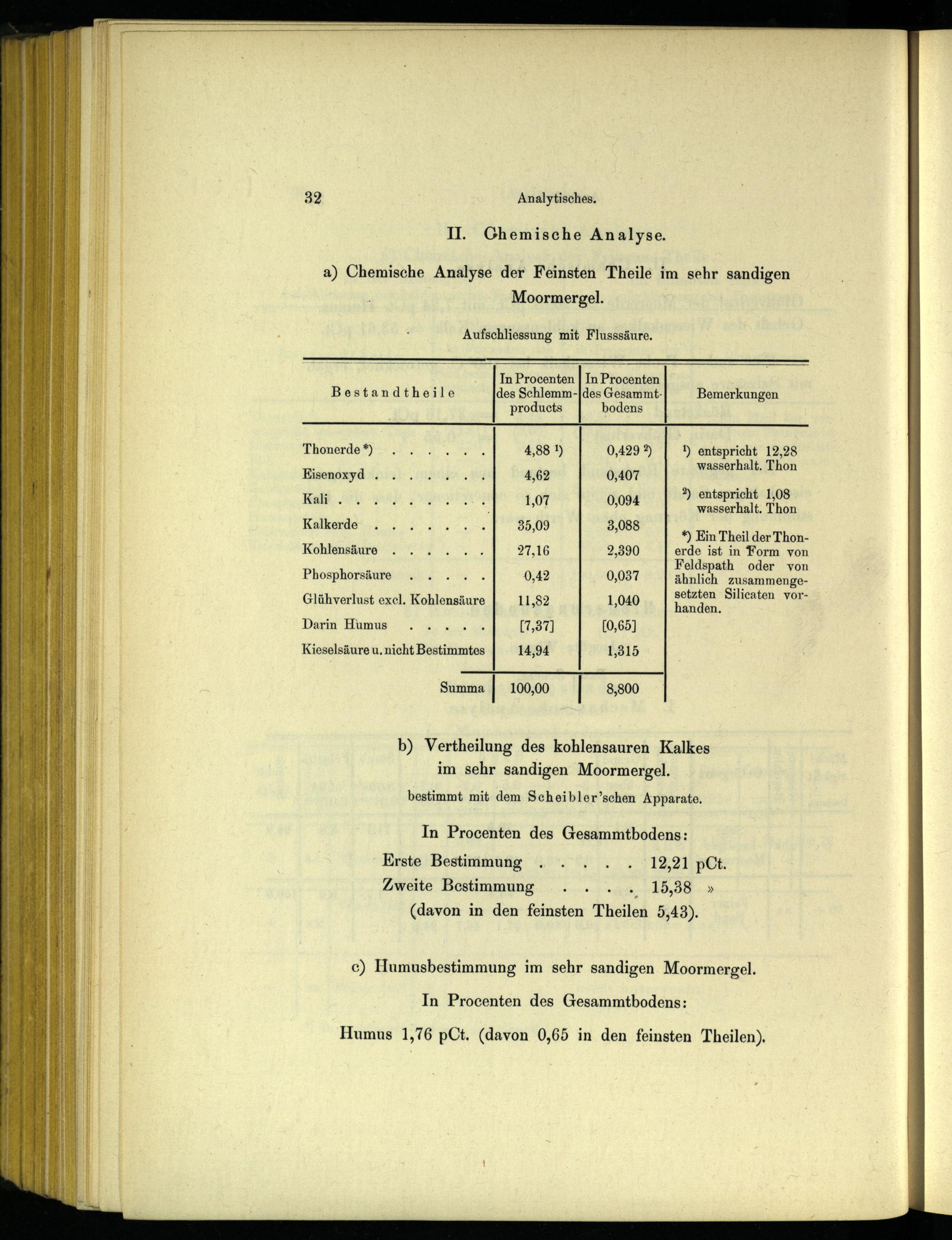 c) Ilumusbestimmung im sehr sandigen Moormergel. In Procenten des Gesammtbodens: