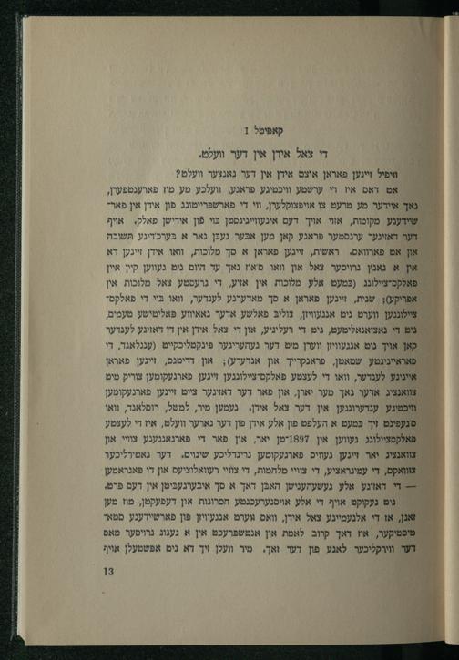 צוואנציג אדער נאך מער יארן, און פאר דער דאזיגער צייט זיינען פארגעקומען וויכטינע ענדערונגען אין דער צאל אידן. געמען מיר, למשל, רוסלאנד, וואו מגעפינט זיך כּמעט א העלפט פון אלע אידן פון דער גארער וועלט, איז די לעצטע פאלקסציילונג געווען אין 1897ימן יאר, און פאר די פֿארגאנגענע צוויי און צוואנציג יאר זיינען געוויס פארגעקומען גרינדליכע שינוים.= דער גאטירליכער צווואקס, די עמינראציע, די צוויי מלחמות, די צוויי רעוואלוציעם און די פּאנראמען = די דאזינע אלע געשעהענישן האבּן דאך א סך איבּערגעביטן אין דעם פּרט, נים געקוקט אויף די אלע אויסגערעכנטע חסרונות און דעפעקטן, מוז מען
