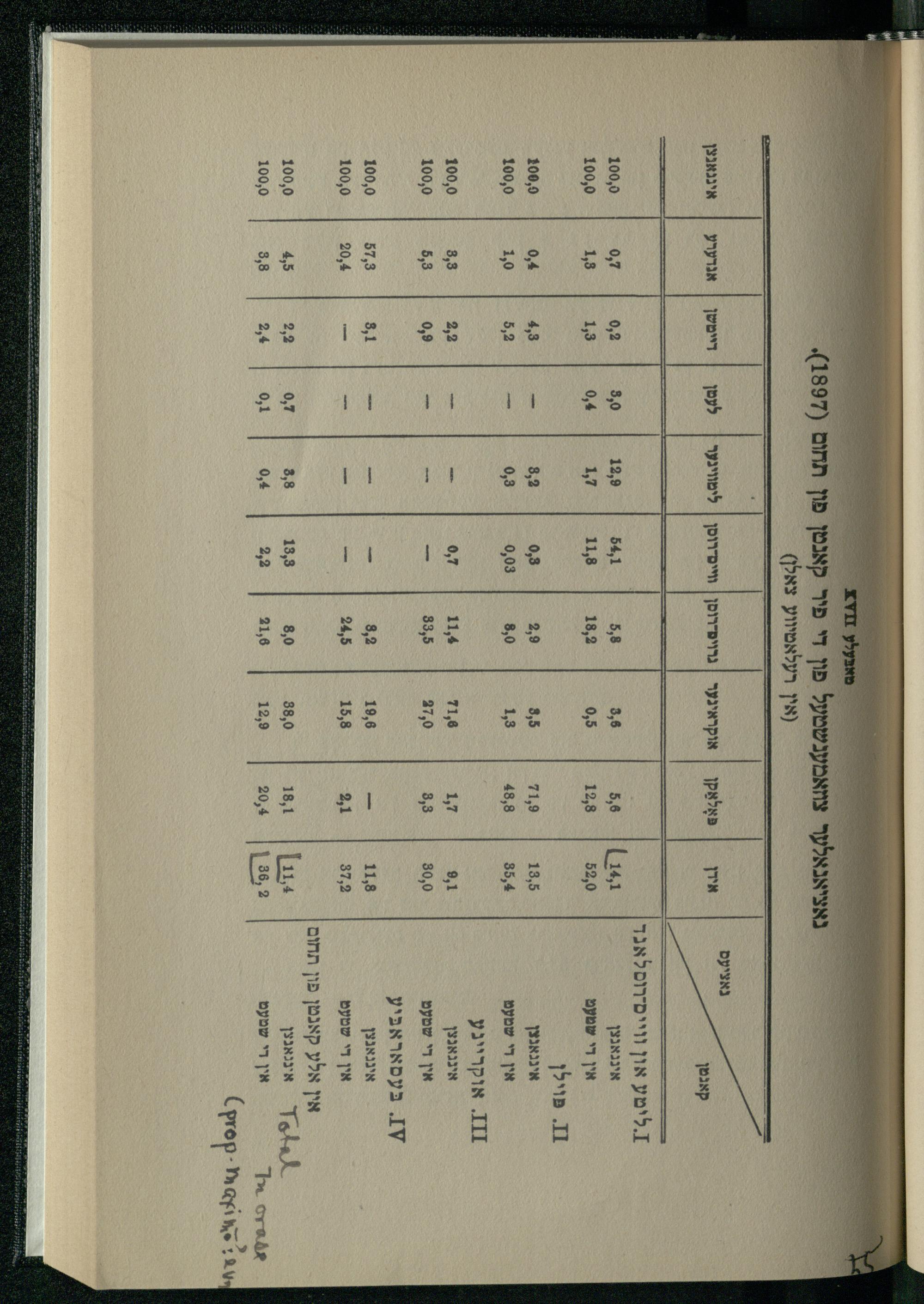 נאציאנאלער צוואמענשטעל פון די פיר קאנטן פון תחום(1897), (אין רעלאטיווע צאלן)