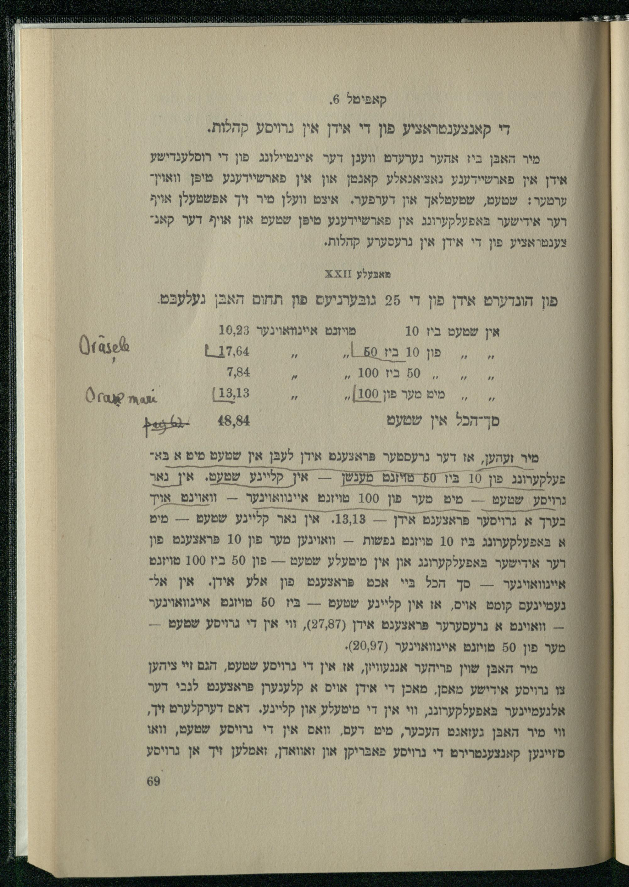 קאפּיטל 6. די קאנצענטראציע פון די אידן אין גרויסע קהלות. מיר האכּן ביז אהער גערעדם וועגן דער איינטיילונג פון די רוסלענדישע אידן אין פארשיידענע נאציאנאלע קאנטן און אין פארשיידענע מיפּן וואויןערמער: שמעט, שטעטלאך און דערפער. איצט וועלן מיר זיך אפּשטעלן אויף רער אידישער בּאפעלקערונג אין פארשיידענע מיפּן שטעט און אויף דער קאנצענטראציע פון די אידן אין גרעסערע קהלות.