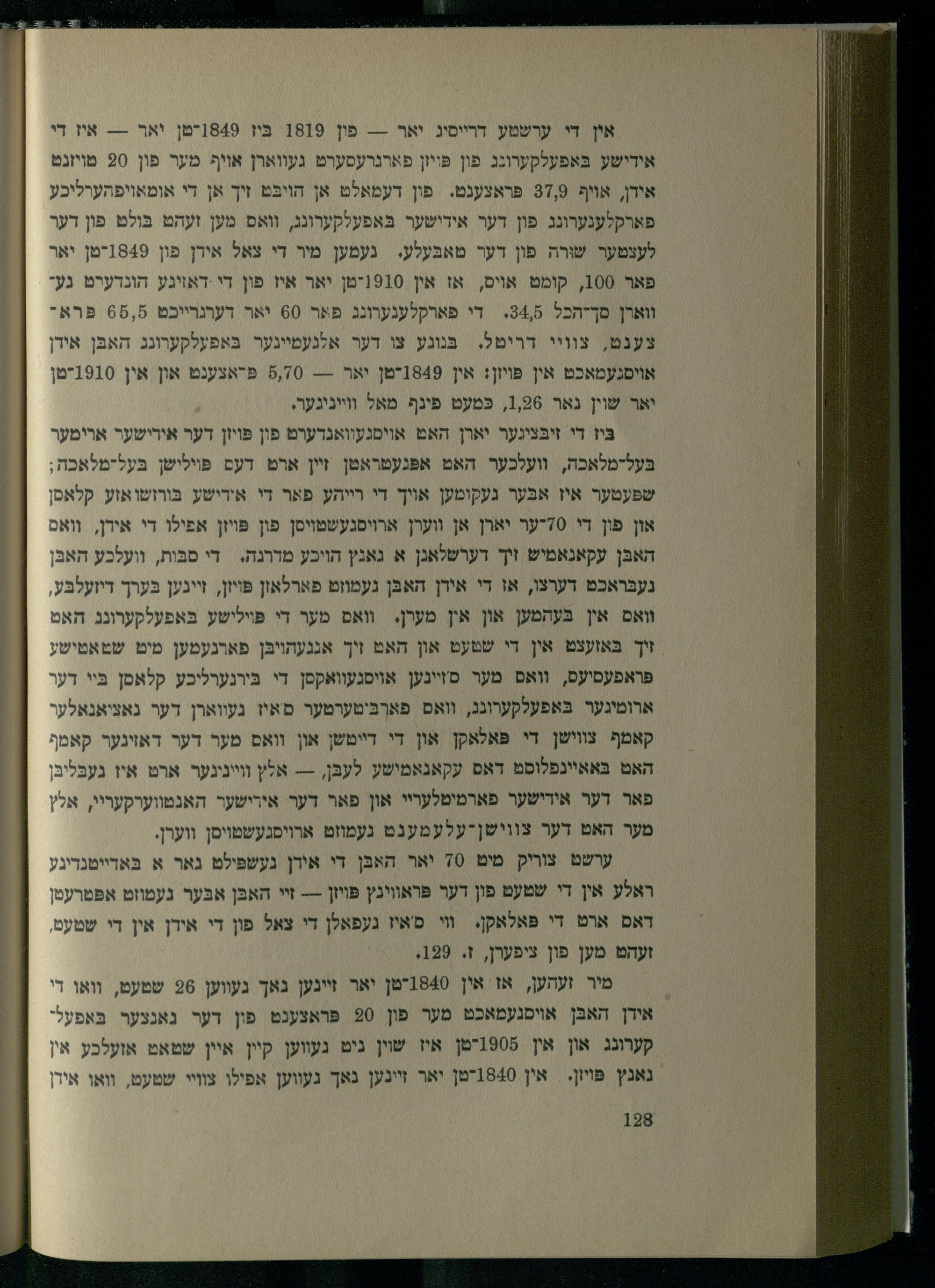 מיר זעהען, אז אין 1840-טן יאר זיינען נאך געווען 26 שטעט, וואו די אידן האבּן אויסגעמאכט מער פון 20 פּראצענט פון דער נאנצער בּאפעלקערונג און אין 1908-טן איז שׁוין ניט געווען קיין איין שטאט אזעלכע אין נאנץ פּױון. אין 1840-טן יאר זיינען נאך געווען אפילו צוויי שטעם, וואו אירן