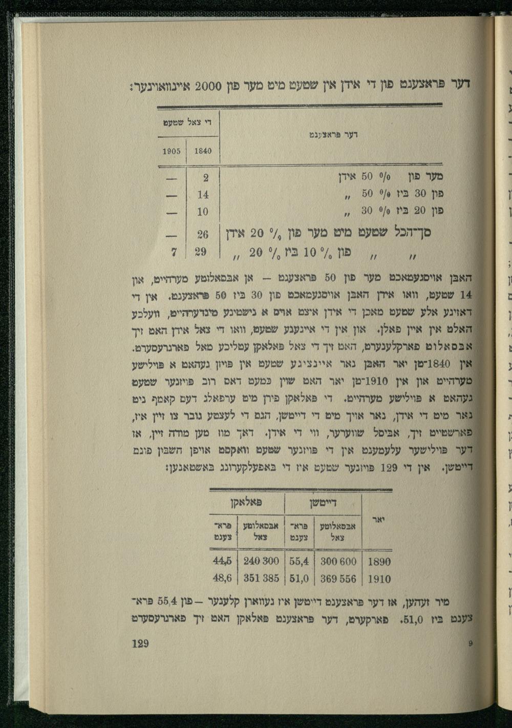 : אויגע אלע שטעט מאכן די אידן איצט אוים א נישטיגע מינדערהייט, וועלכע |האלט אין איין פאלן, און און די איינענע שטעם, וואו די צאל אידן האט זיך : בּסאלוט פארקלענערט, האט זיך די צאל פּאלאקן עטליכע מאל פארגרעסערט. און 1840יפן יאר האבּן נאר איינציגע שטעט אין פּויון געהאט א פּױלישע פערהייט און אין 1910יפן יאר האט שױין כּמעט דאס רוב פּויונער שטעט געהאט א פּוילישע מערהייט. די פּאלאקן פירן מיט ערפאלג דעם קאמף ניט גאר מיט די אידן, נאר אויך מיט די דייטשן, הגם די לעצטע נובר צו זיין איז, פארשטייט זיך, אביסל שווערער, וי די אידן. דאך מוו מען מודה זיין, או דער פּױילישער עלעמענט אין די פּױונער שטעט וואקסט אויפן חשבּון פונם דייטשן. און די 199 פּויונער שטעט איז די בּאפעלקערונג בּאשטאנען: