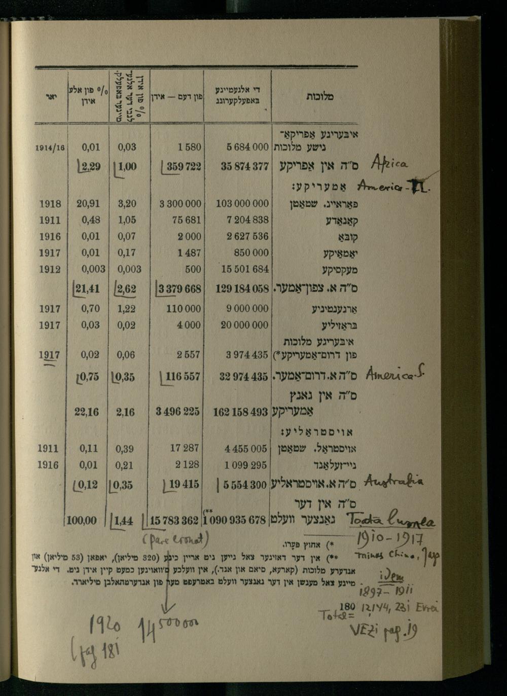 קו|.--:*6 יוה=**) אין דער דאוינער צאל נייען גים אריין כיגֶע(890 מיליאן), יאפאן(58 מיליאן) און אנדערע מלוכות(קארקא, סיאם און אגר.), אין וועלכע טסוואוינען כמעט קיין אידן נים.- די אלגט" מיינץ צאל מענשן אין דער גאנצער וועלט באטרעפט מעך פון אגרערמהאלבן מיליארר.