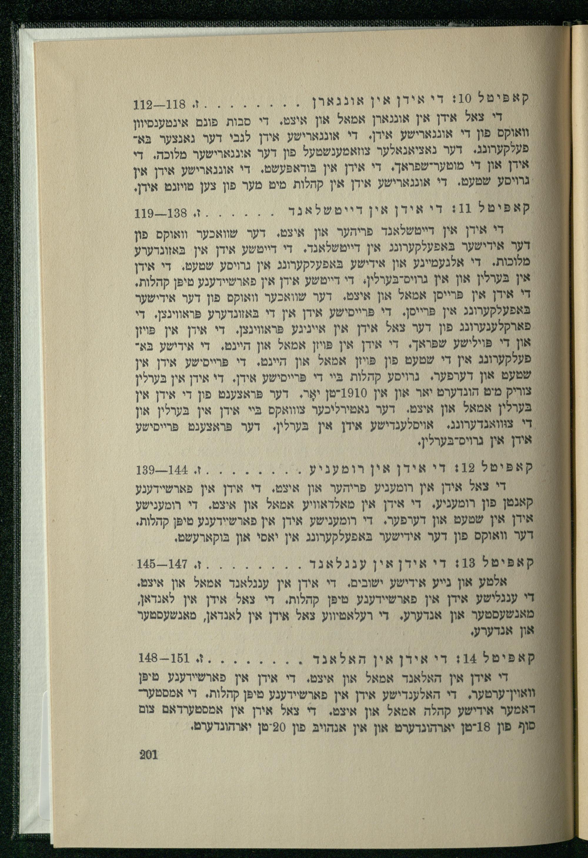 די אידן אין דייטשלאנד פריהער און איצט. דער שוואכער וואוקם פון דער אידישער בּאפעלקערונג אין דייטשלאנד. די דייטשע אידן אין בּאזונרערע { מלוכות. די אלגעמיינע און אידישע בּאפעלקערונג אין גרויסע שטעט. די אירן אין בּערלין און אין גרויס"בּערלין. די דייטשע אידן אין פארשיידענע טיפן קהלות, די אידן אין פּרייסן אמאל און איצט. דער שוואכער וואוקס פון דער אידישער בּאפעלקערונג אין פּרײיסן. די פּרײסישע אידן אין די בּאזונדערע פּראווינצן. די פארקלעגערונג פון דער צאל אידן אין אייניגע פראווינצן. די אידן אין פּויזן און די פּוילישע שפּראך. די אידן אין פּױזן אמאל און היינט. די אידישע בּאפעלקערונג אין די שטעט פון פּױזן אמאל און היינט. די פּרייסישע אידן אין שטעט און דערפער. גרויסע קהלות בּיי די פּרייסישע אידן. די אידן אין בּערלין צוריק מיט הונדערט יאר און אין 1910-טן יאָר. דער פראצענט פון די אידן אין בּערלין אמאל און איצט. דער נאמירליכער צווואקס בּײ אידן אין בּערלין און די צווואנדערונג. אויסלענדישע אידן אין בּערלין. דער פּראצענט פּרייסישע אידן אין גרױסיבּערלין,