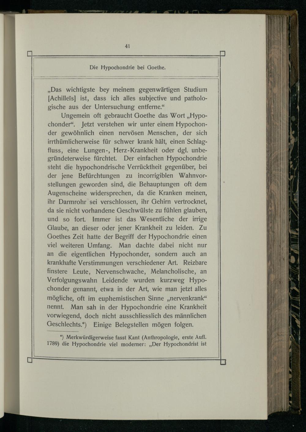 *) Merkwürdigerweise fasst Kant(Anthropologie, erste Aufl. 1789) die Hypochondrie viel moderner:„Der Hypochondrist ist