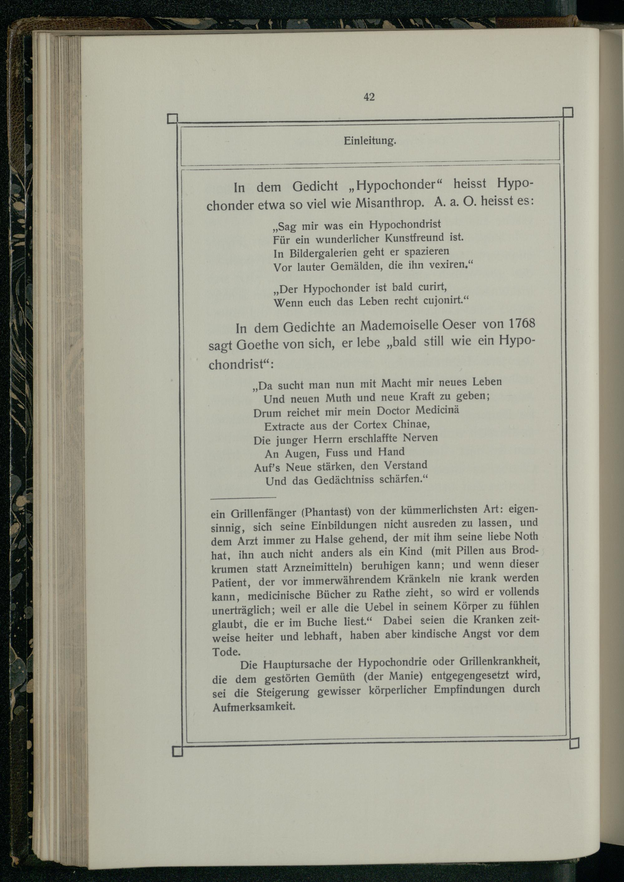 In dem Gedichte an Mademoiselle Oeser von 1768 sagt Goethe von sich, er lebe„bald still wie ein Hypo