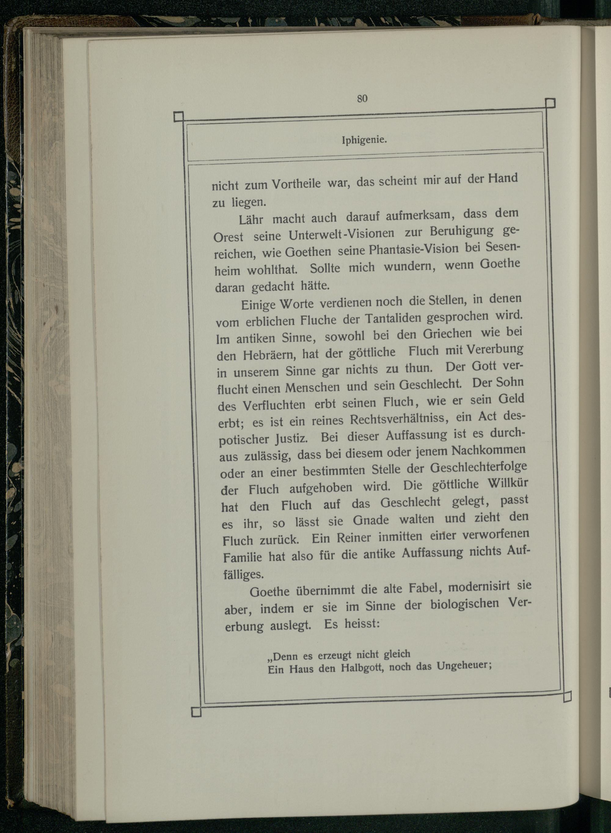 Lähr macht auch darauf aufmerksam, dass dem Orest seine Unterwelt-Visionen zur Beruhigung gereichen, wie Goethen seine Phantasie-Vision bei Sesenheim wohlthat. Sollte mich wundern, wenn Goethe daran gedacht hätte.
