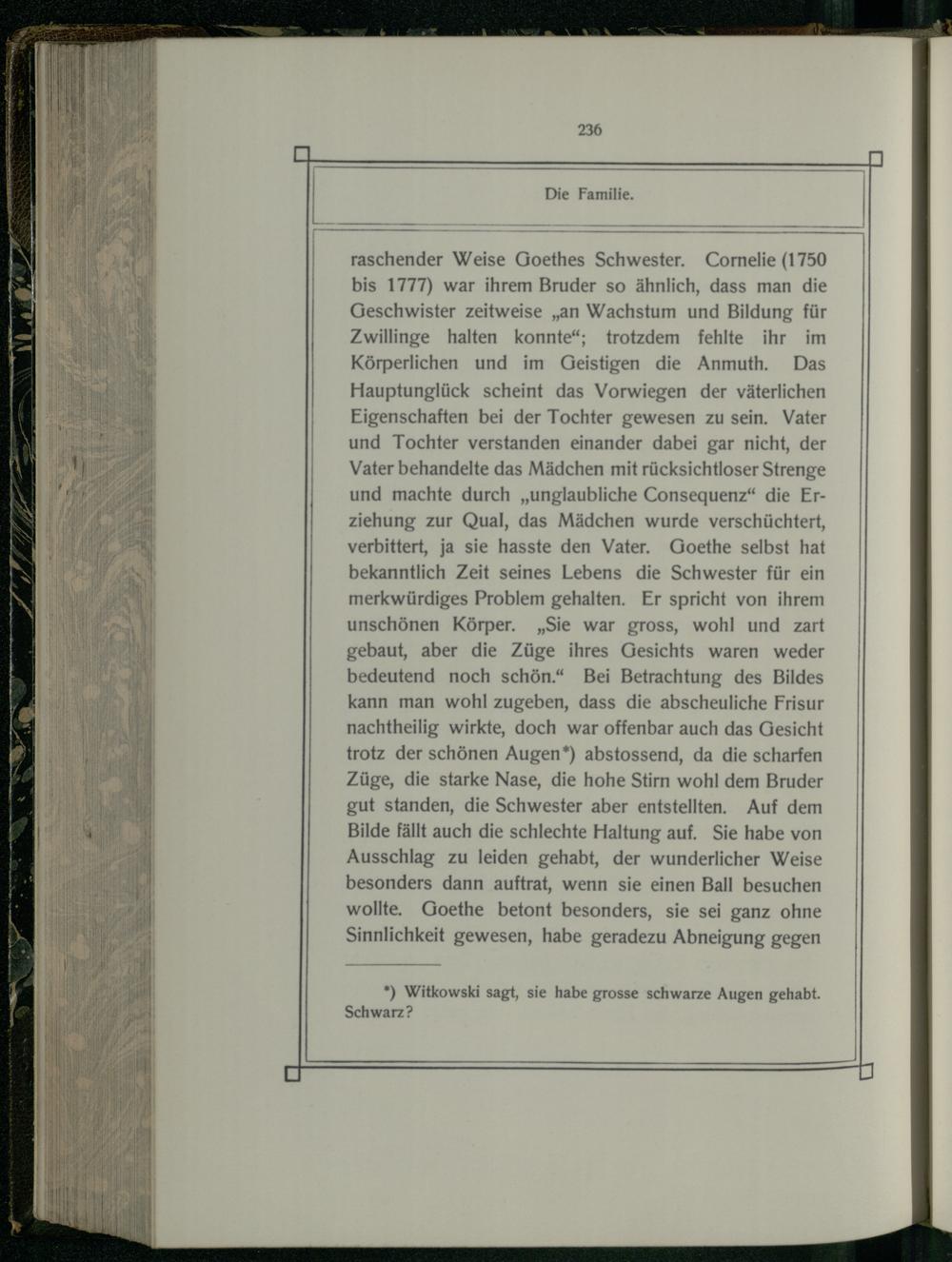 *) Witkowski sagt, sie habe grosse schwarze Augen gehabt. Schwarz?