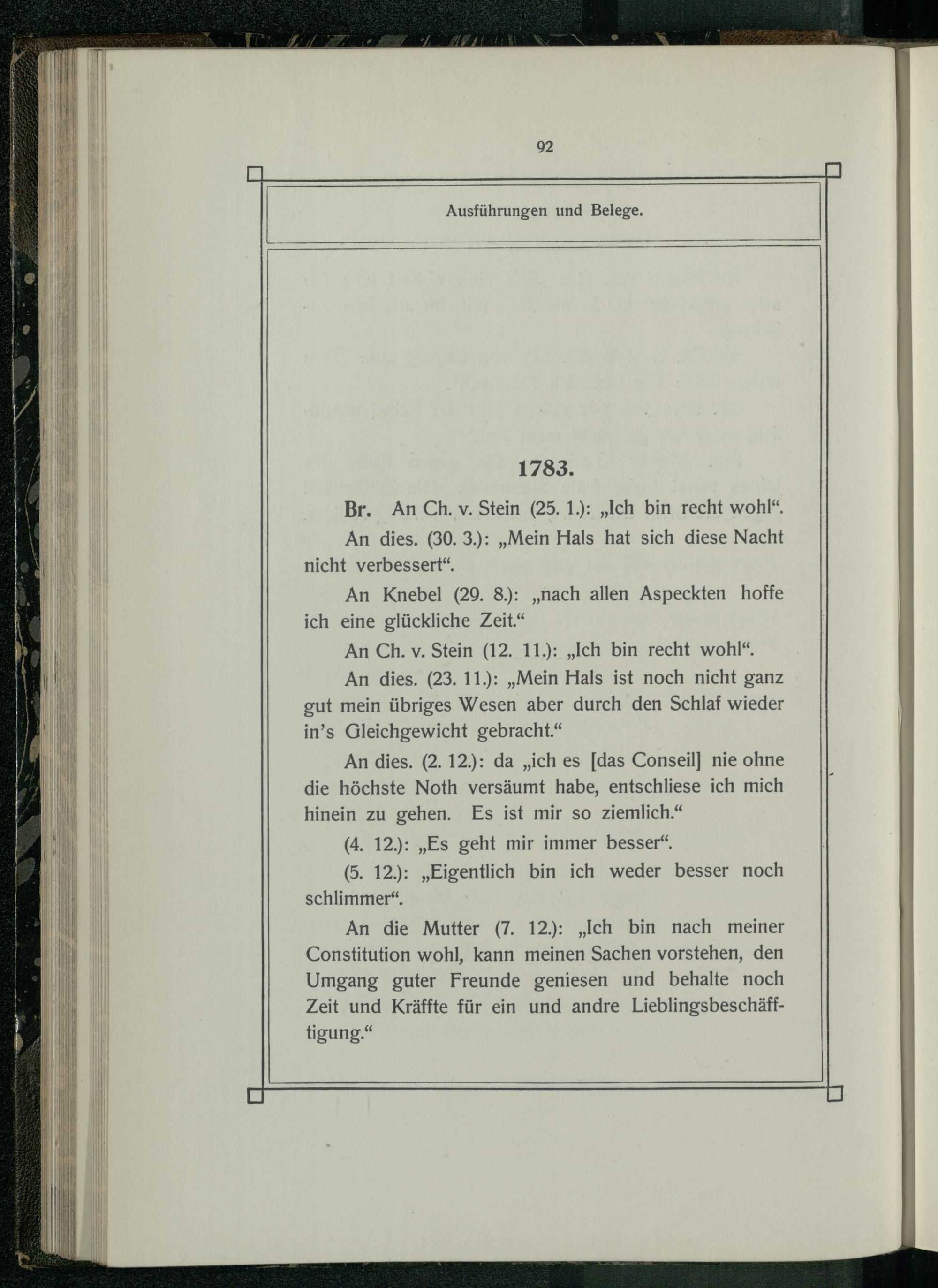 Br. An Ch. v. Stein(25. 1.):„Ich bin recht wohl“.