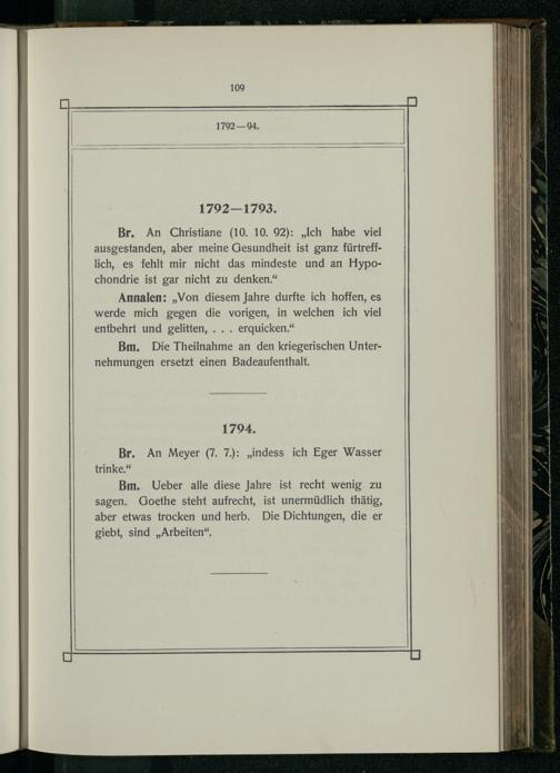 Br. An Christiane(10. 10. 92):„Ich habe viel ausgestanden, aber meine Gesundheit ist ganz fürtrefflich, es fehlt mir nicht das mindeste und an Hypochondrie ist gar nicht zu denken.“
