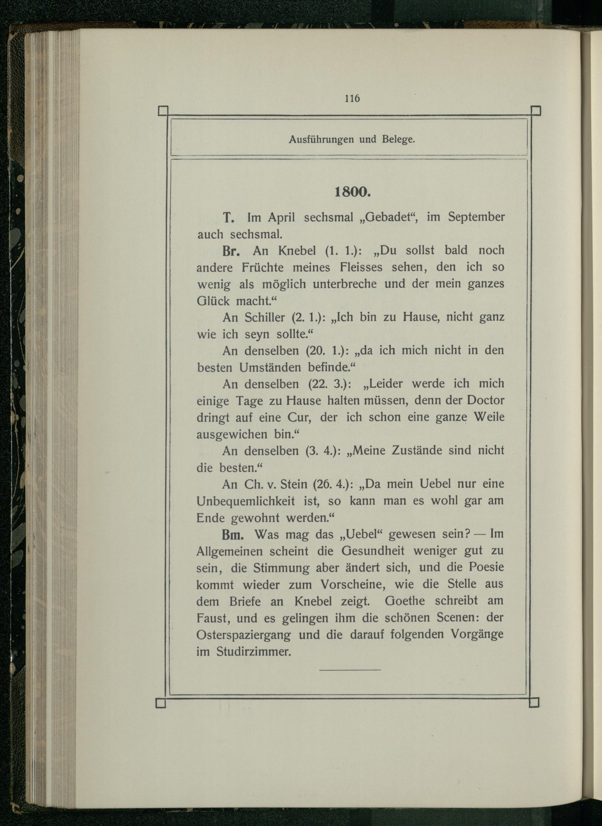Br. An Knebel(1. 1.):„Du sollst bald noch andere Früchte meines Fleisses sehen, den ich so wenig als möglich unterbreche und der mein ganzes Glück macht.“