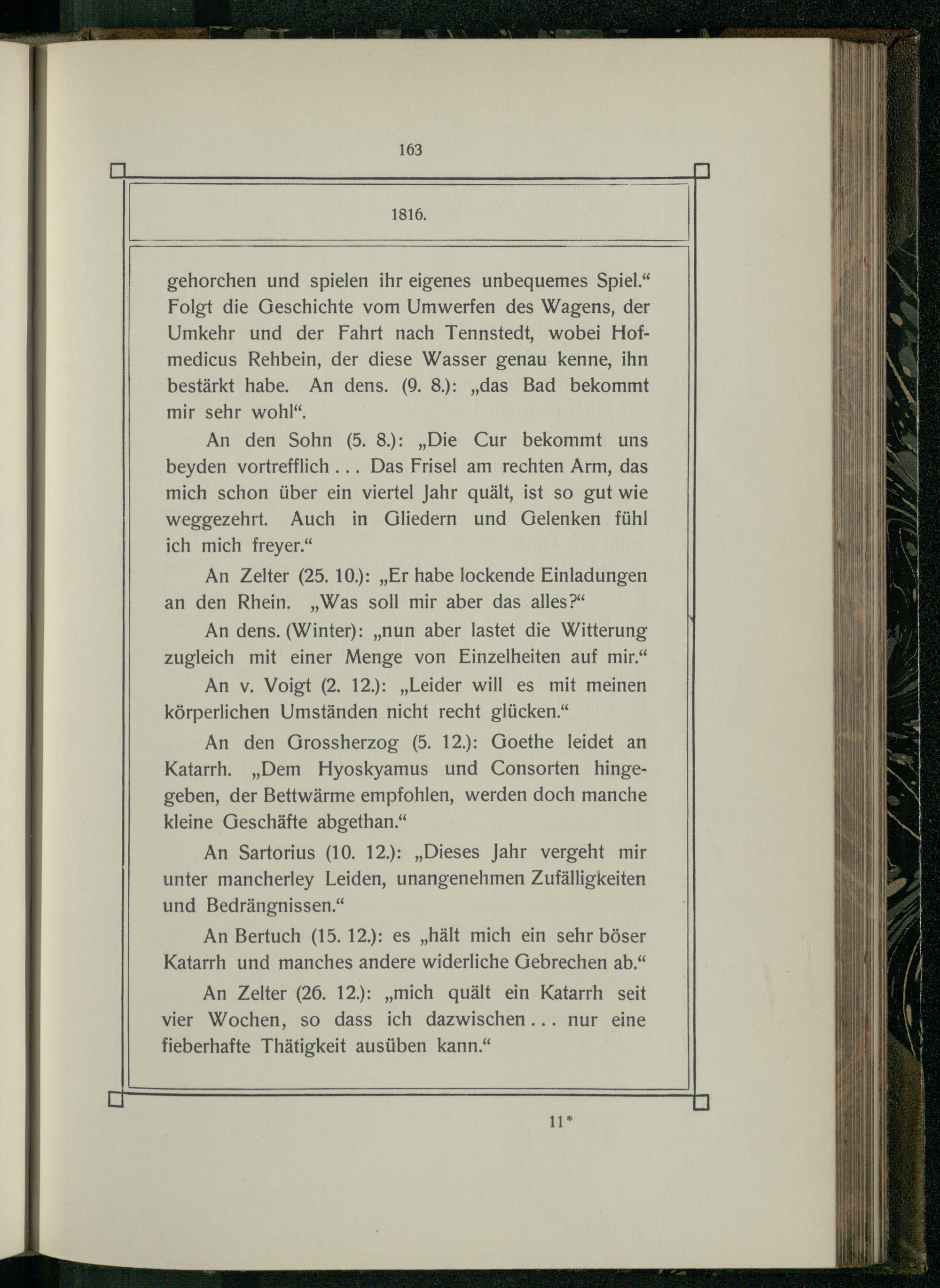 An Zelter(26. 12.):„mich quält ein Katarrh seit vier Wochen, so dass ich dazwischen... nur eine fieberhafte Thätigkeit ausüben kann.“