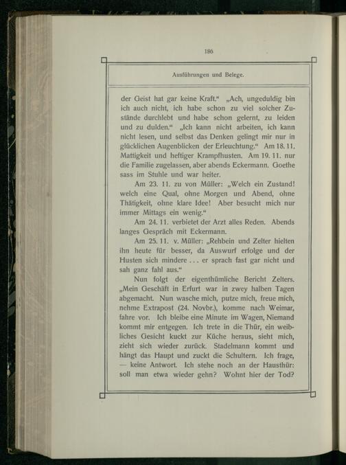 Am 23. 11. zu von Müller:„Welch ein Zustand! welch eine Qual, ohne Morgen und Abend, ohne Thätigkeit, ohne klare Idee! Aber besucht mich nur immer Mittags ein wenig.“