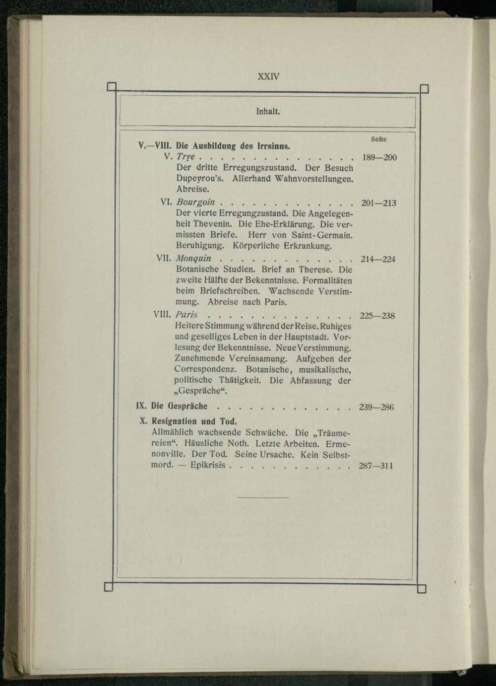 BOUrgOM N Der vierte Erregungzustand. Die Angelegenheit Thevenin. Die Ehe-Erklärung. Die vermissten Briefe. Herr von Saint- Germain. Beruhigung. Körperliche Erkrankung. MONGUN ER Botanische Studien. Brief an Therese. Die zweite Hälfte der Bekenntnisse. Formalitäten beim Briefschreiben. Wachsende Verstimmung. Abreise nach Paris,