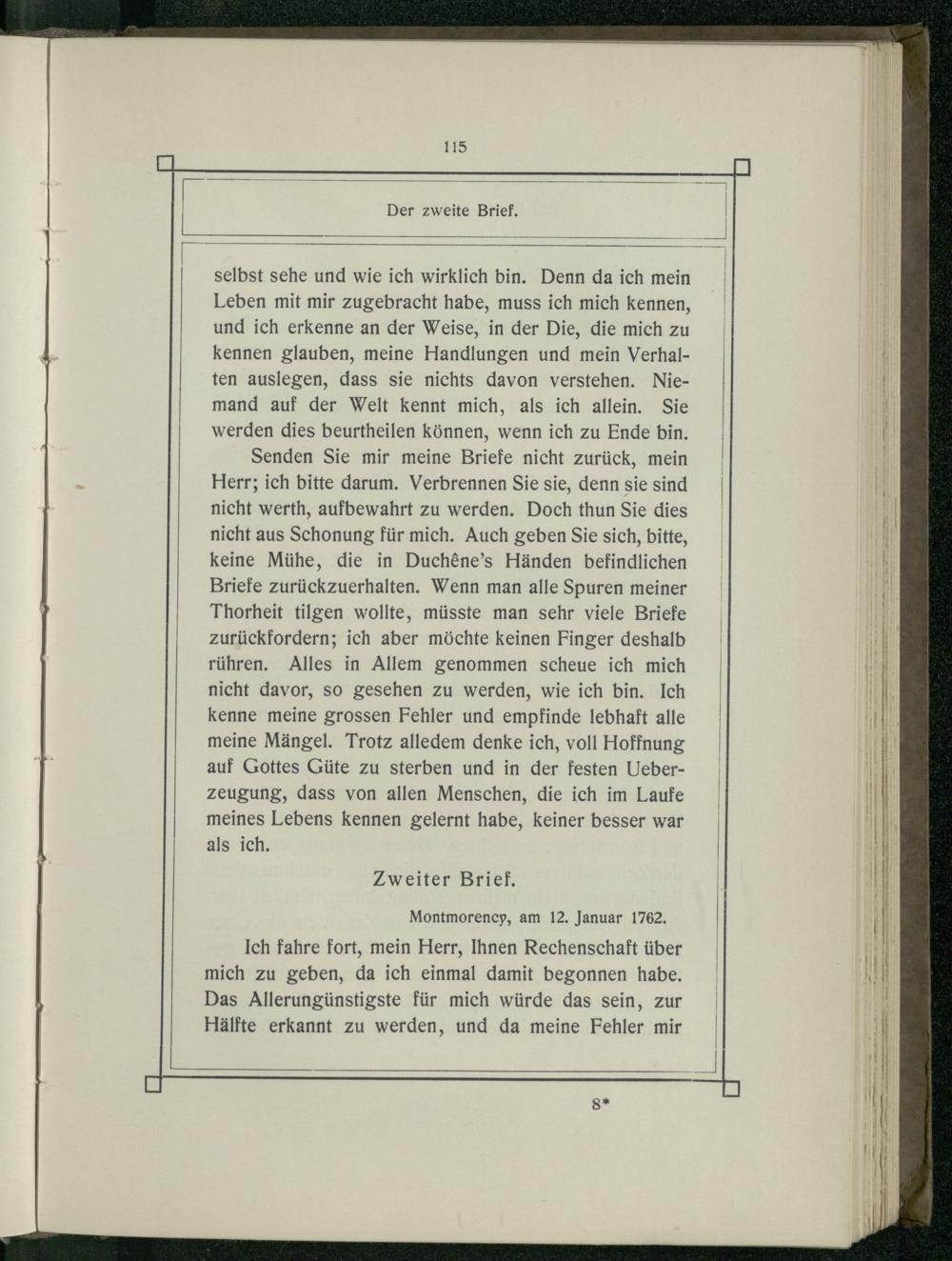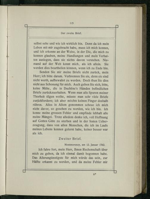 ! Montmorency, am 12. Januar 1762.| Hälfte erkannt zu werden, und da meine Fehler mir|
