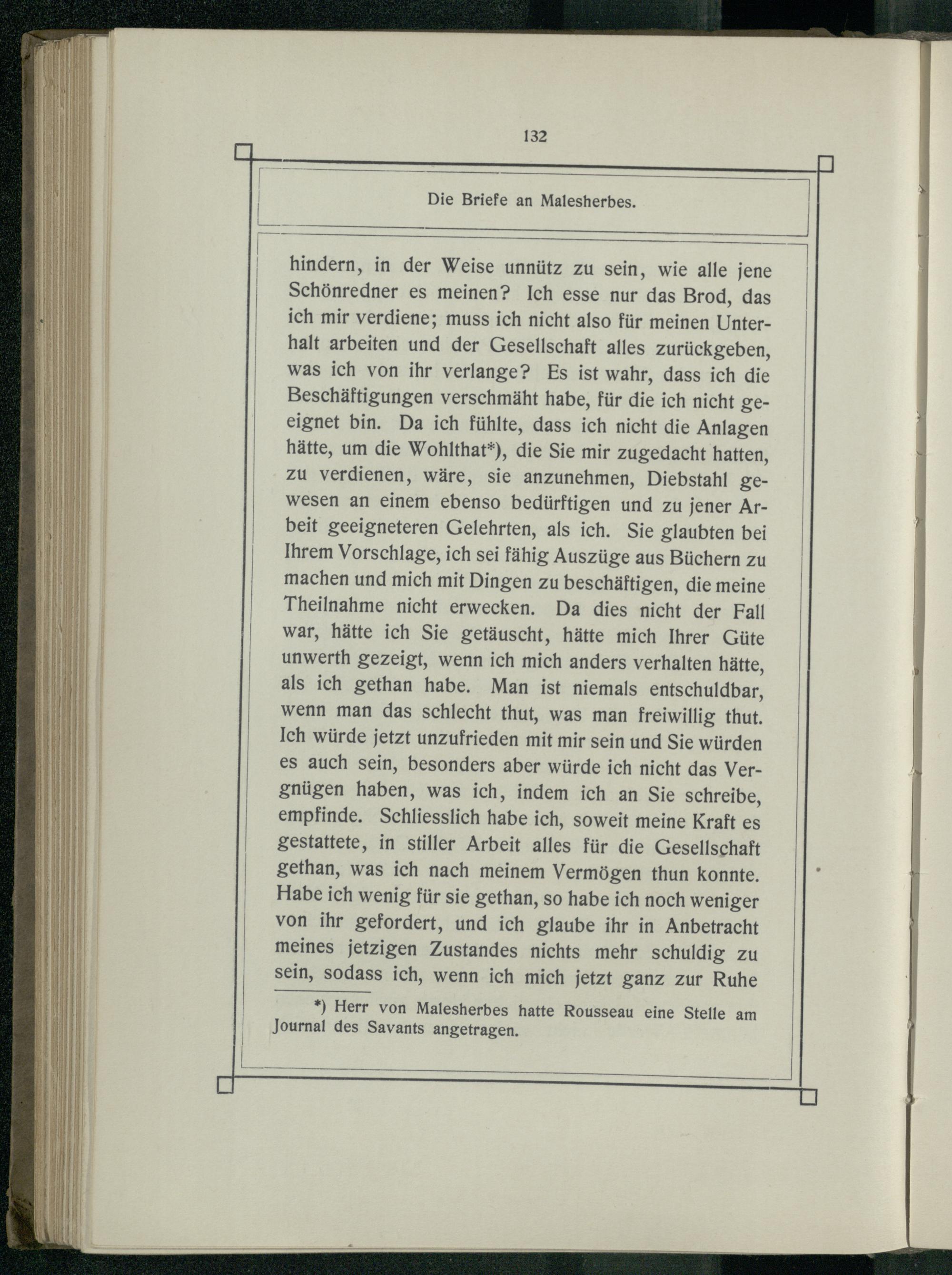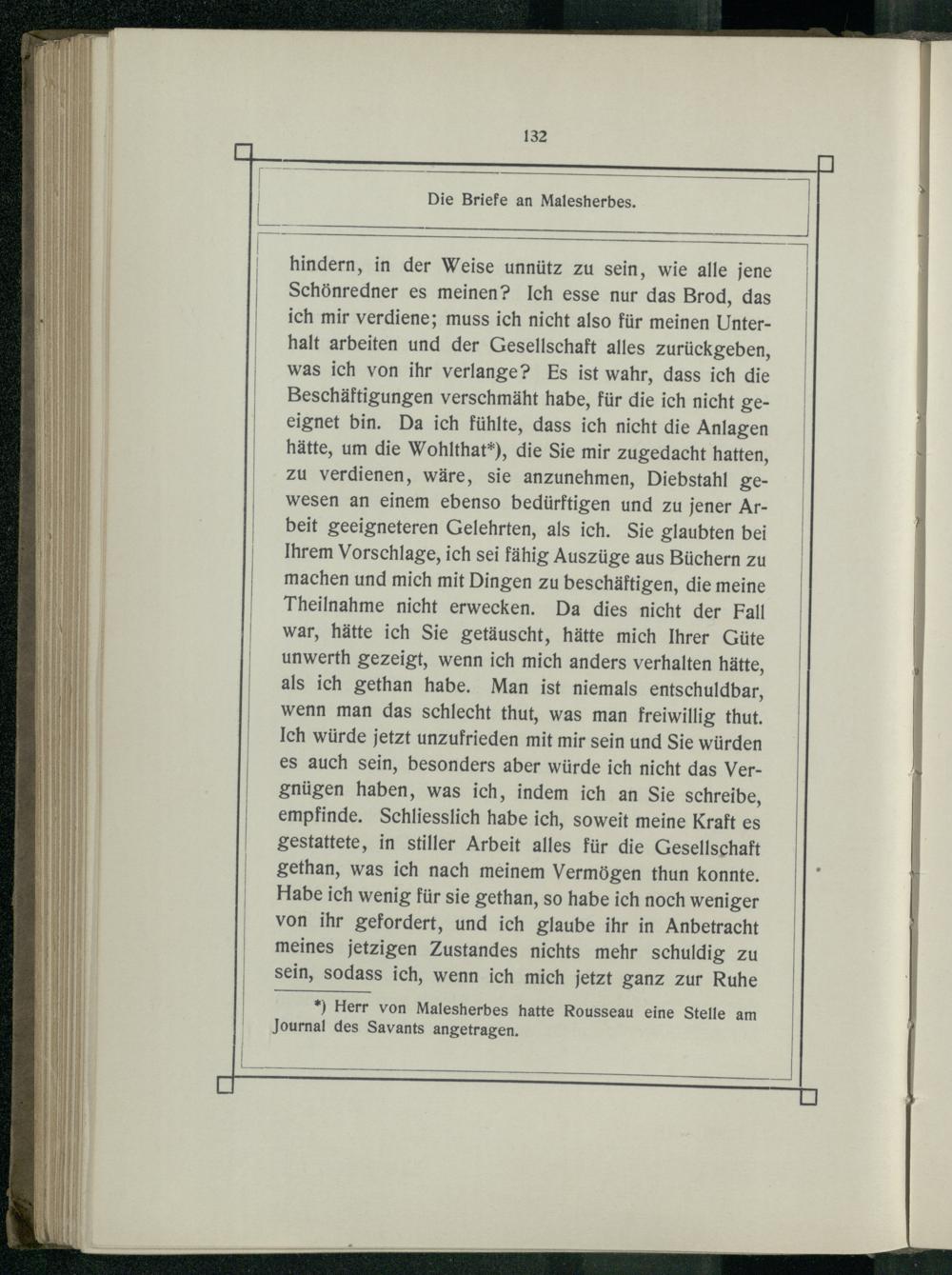*) Herr von Malesherbes hatte Rousseau eine Stelle am Journal des Savants angetragen.