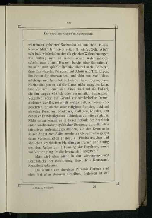 Man wird ohne Mühe in dem wiedergegebenen Bruchstücke der Schilderung Kraepelin’s Rousseau’s Krankheit erkennen.