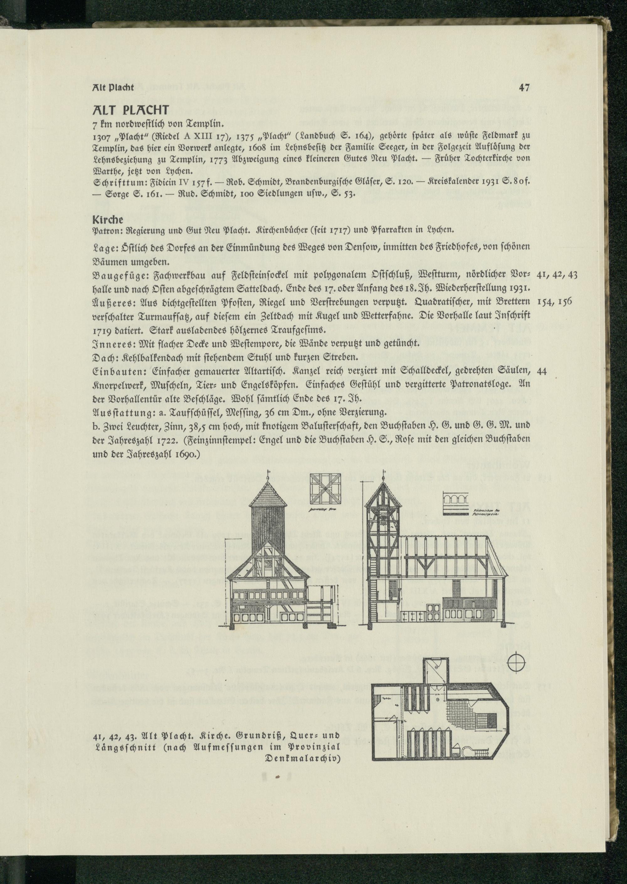 41, 42, 453. Alt Placht. Kirche. Grundriß, Quer: und. 4 Längsfchnitt(nach Aufmeſſungen im Provinzial.* Denkmalarchiv)