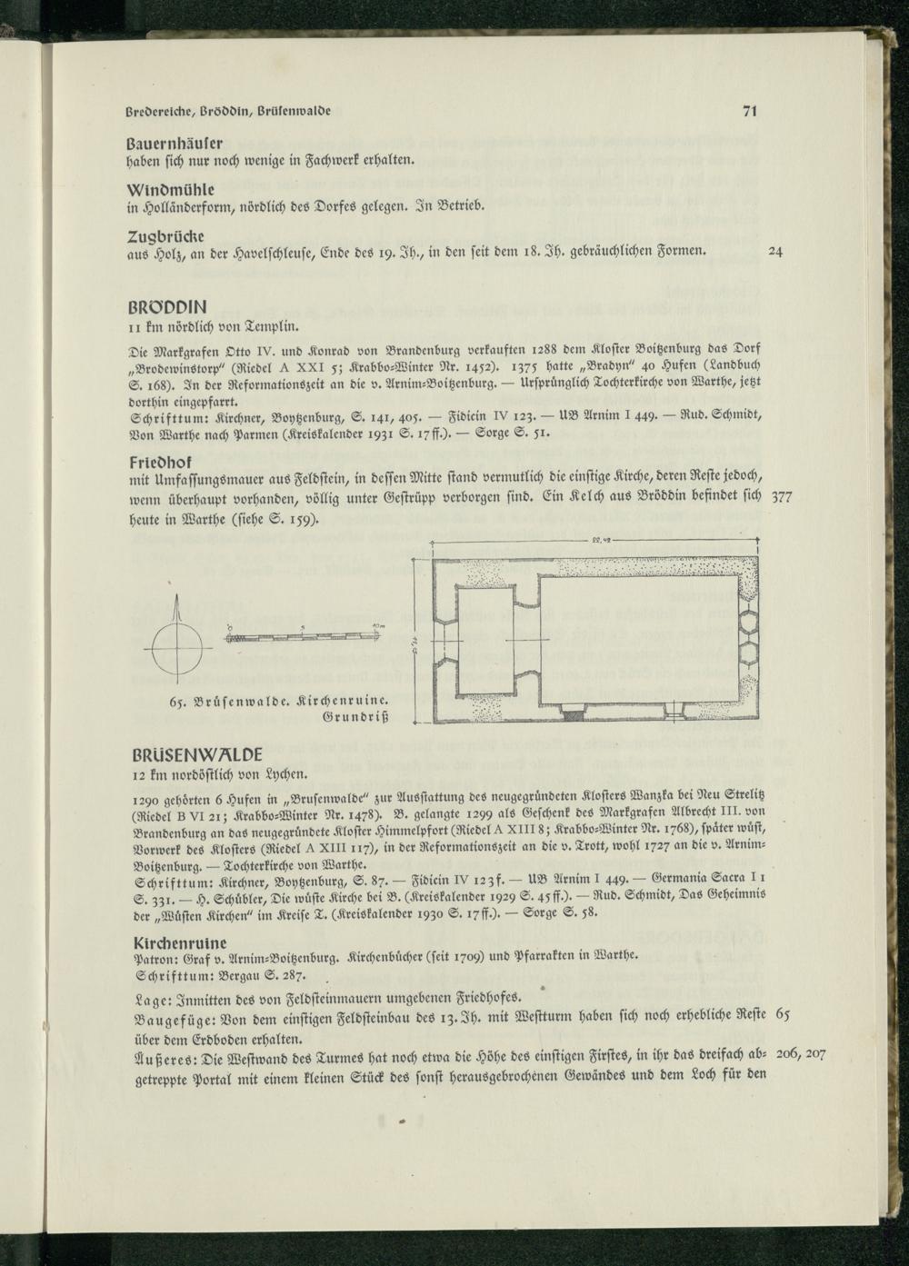 Die Markgrafen Otto IV. und Konrad von Brandenburg verkauften 1288 dem Kloſter Boitzenburg das Dorf „Brodewinstorp“(Riedel A XXI 5; Krabbo⸗Winter Nr. 1452). 1375 hatte„Bradyn“ 40 Hufen(Landbuch S. 168). In der Reformationszeit an die v. Arnim⸗-Boitzenburg.— Urſpruͤnglich Tochterkirche von Warthe, jetzt dorthin eingepfarrt.