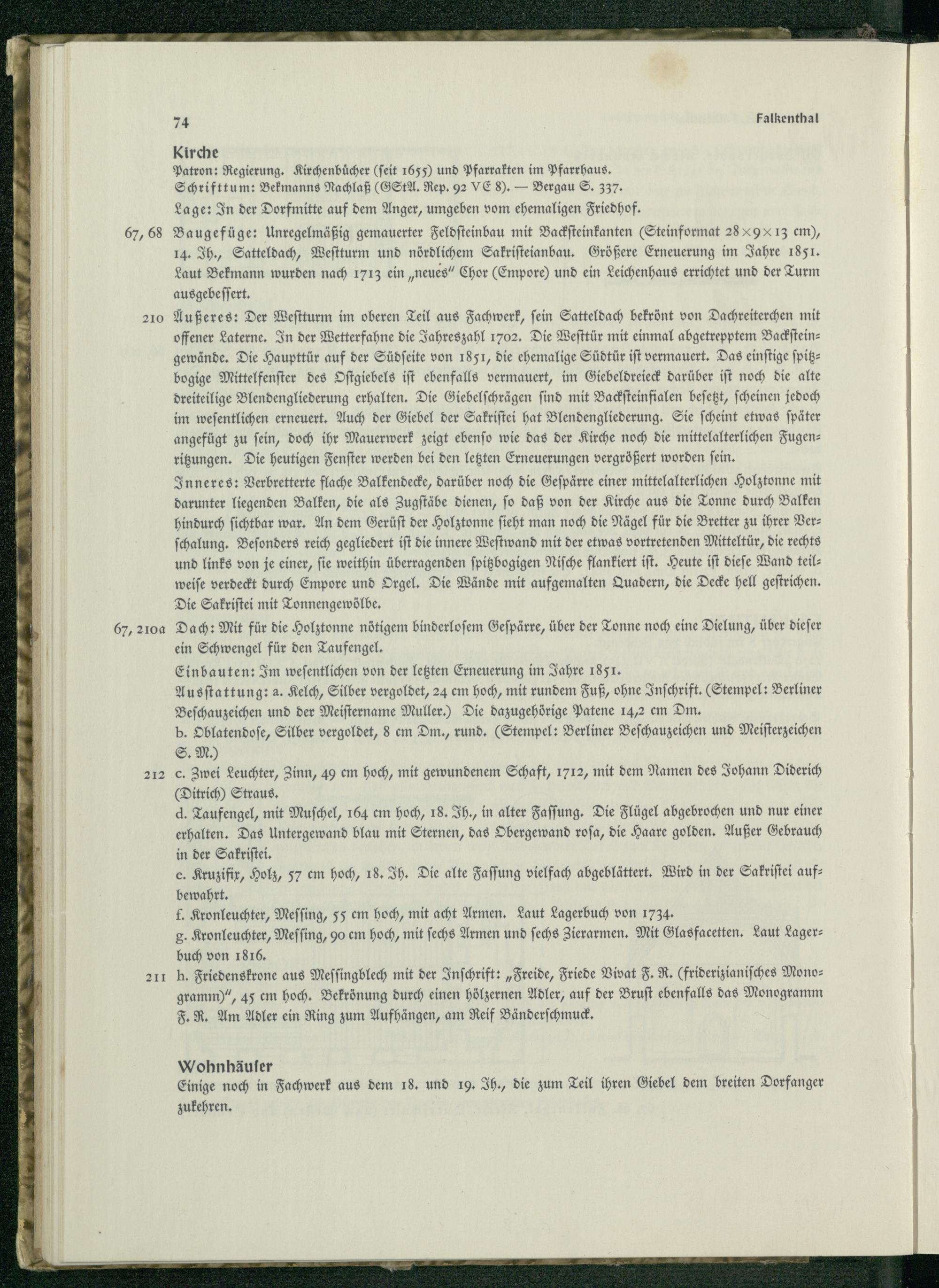 Kirche Patron: Regierung. Kirchenbuͤcher(ſeit 1655) und Pfarrakten im Pfarrhaus. Schrifttum: Bekmanns Nachlaß(GStA. Rep. 92 VE 8).— Bergau S. 337.