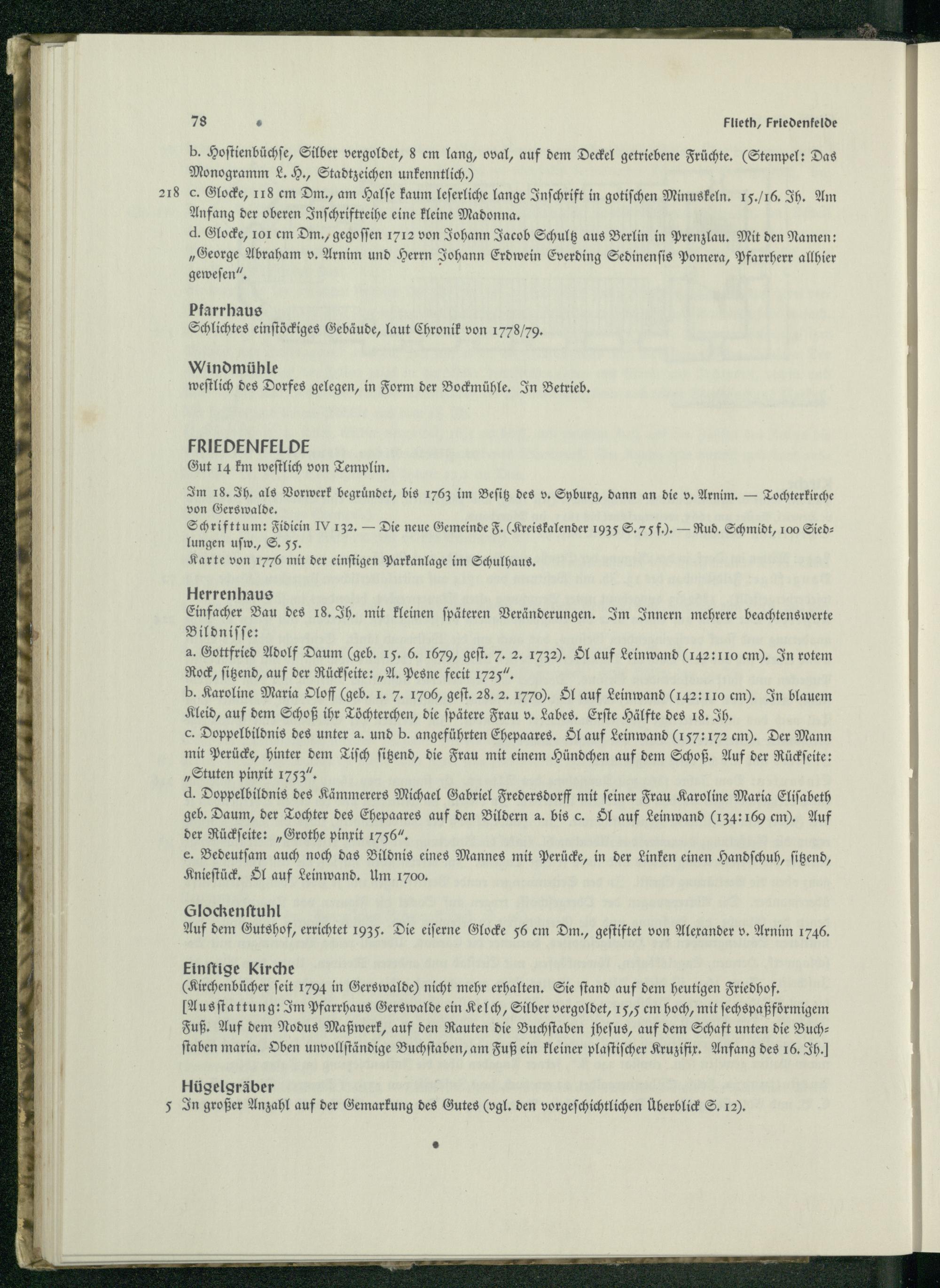 Im 18. Ih. als Vorwerk begründet, bis 17563 im Beſitz des v. Syburg , dann an die v. Arnim.— Tochterkirche von Gerswalde.