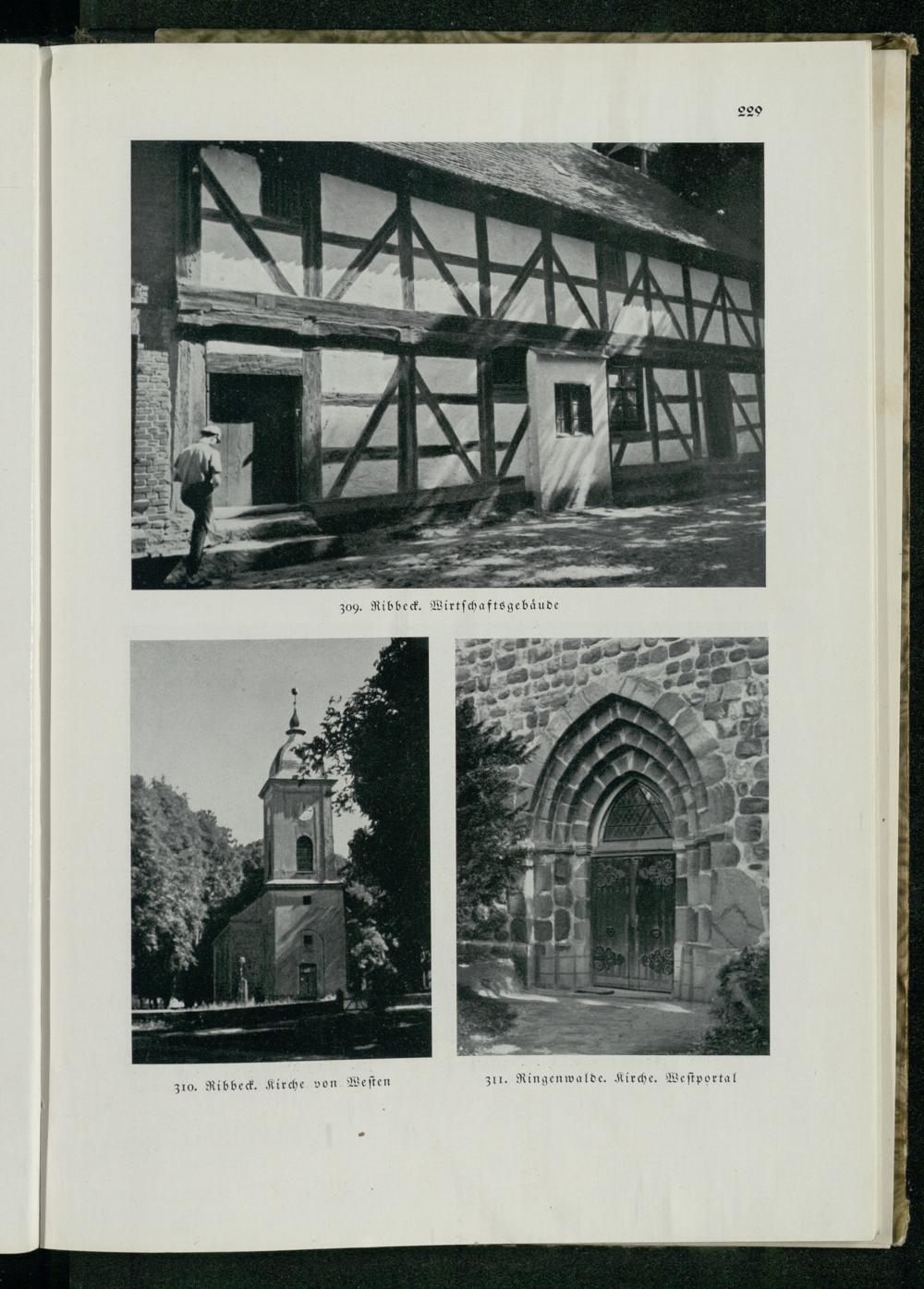 A 309. Ribbeck. Wirtschaftsgebäude 229 310. Ribbeck. Kirche von Westen 311. Ringenwalde. Kirche. Westportal