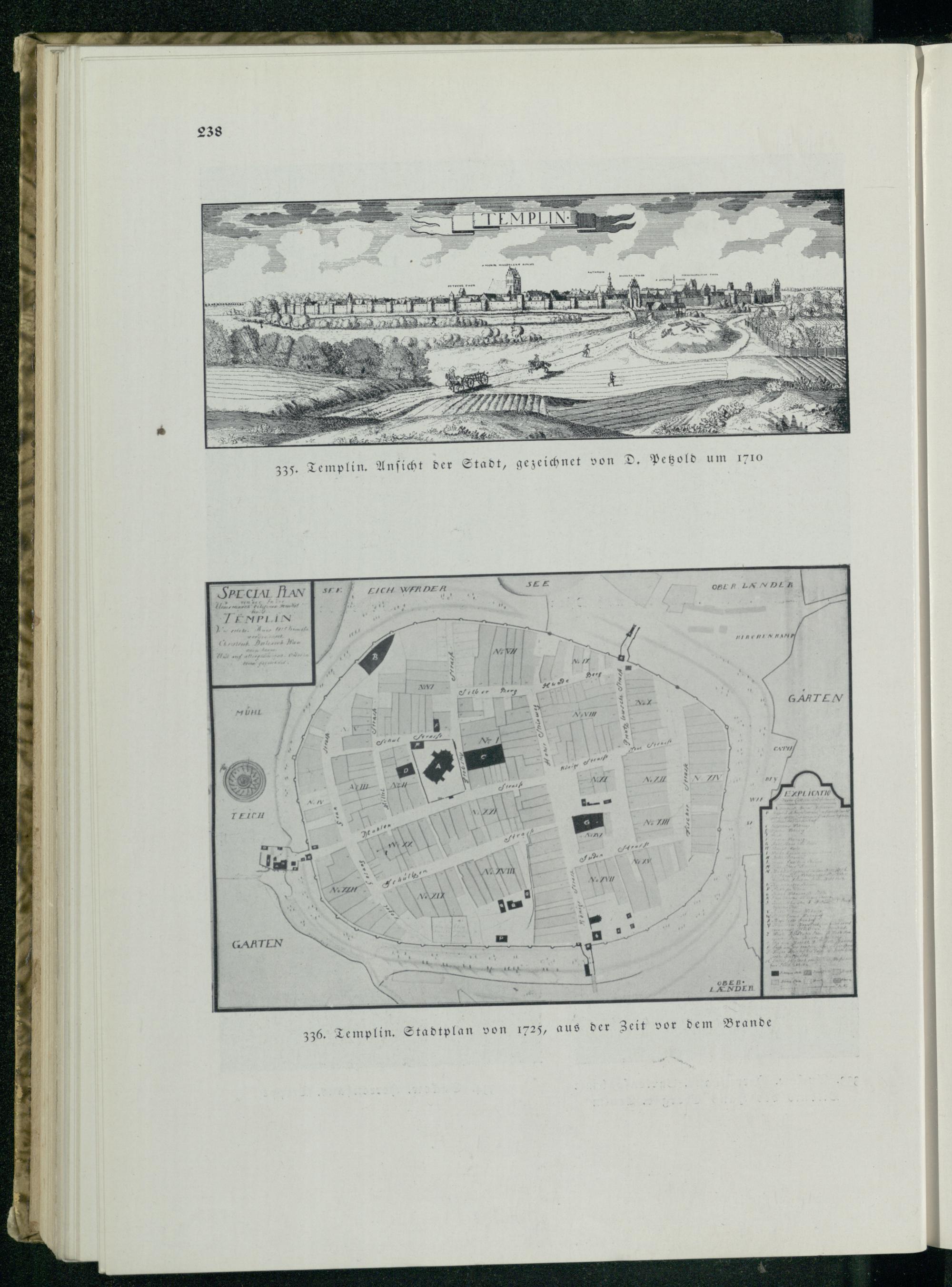 | } 335. Templin . Anſicht der Stadt, gezeichnet von D. Petzold um 1710 SPECIAL FMM TENPLIN A FAPLICATI OBE— 1ANDER 236. Templin. Stadtplan von 1725, aus der Zeit vor dem Brande 33 4/ .