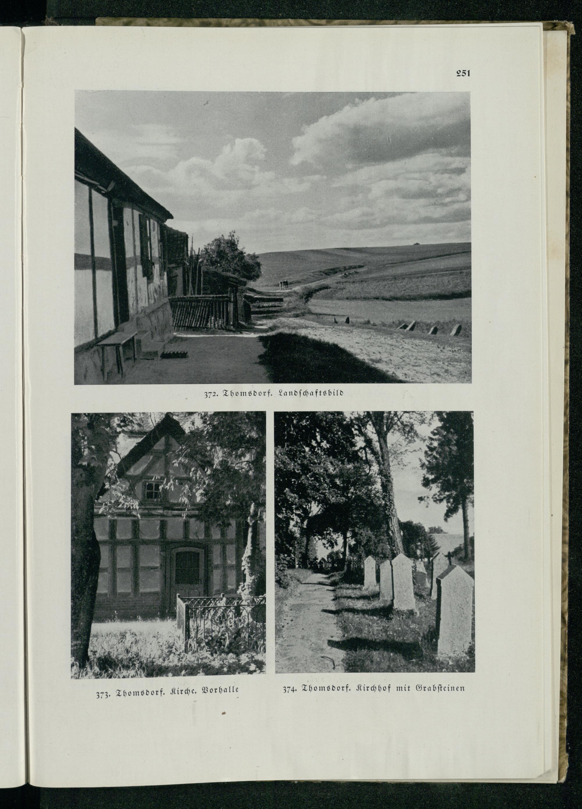 373. Thomsdorf. Kirche. Vorhalle 0 372. Thomsdorf. Landſchaftsbild 374. Thoms dorf. Kirchhof mit Grabſteinen