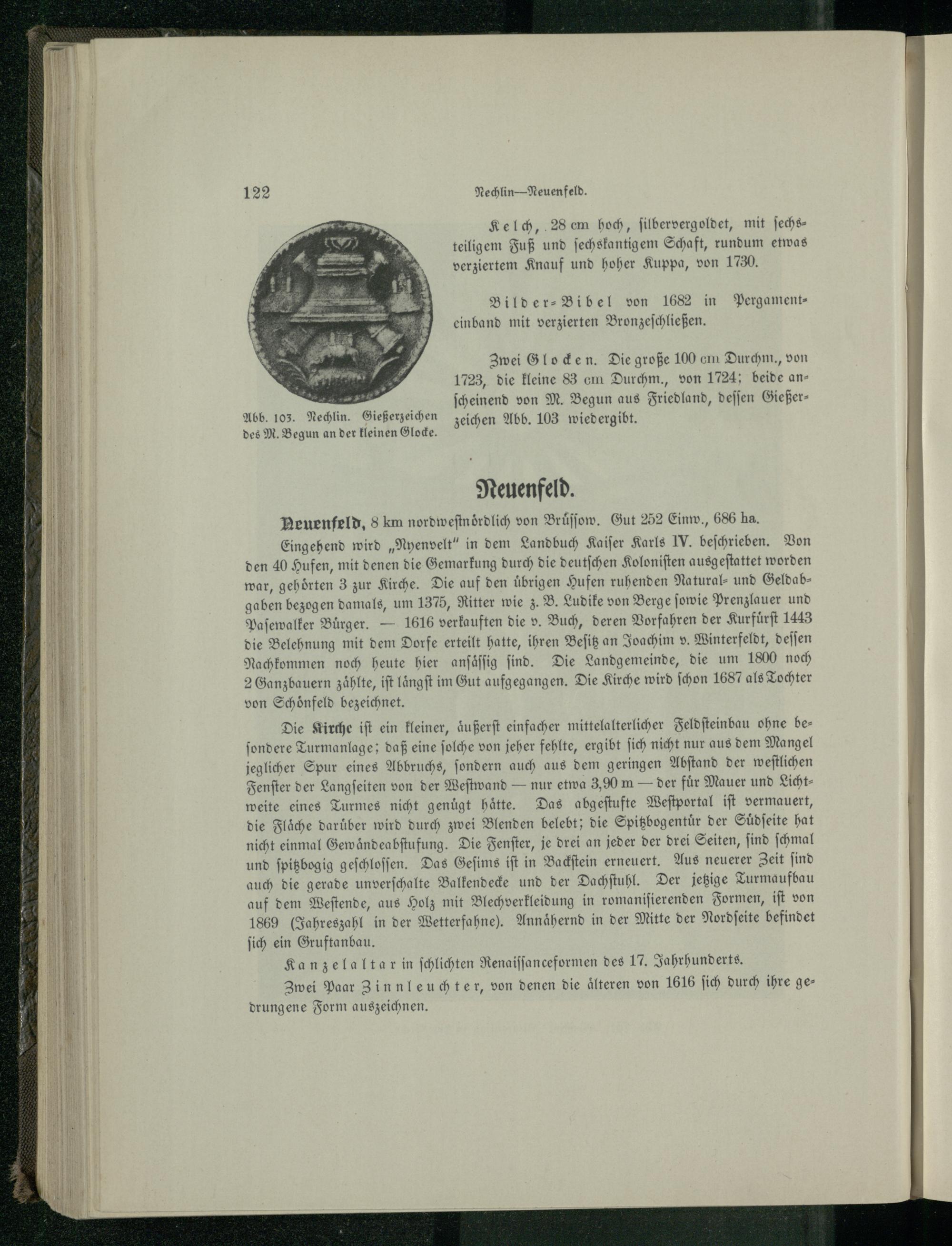 . 103. Nechlin. Gießerzeichen zeichen Abb. 103 wiedergibt. des M. Begun an der kleinen Glocke.