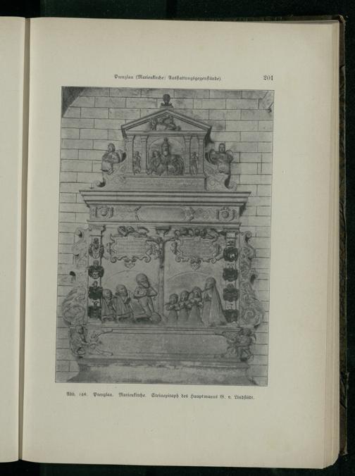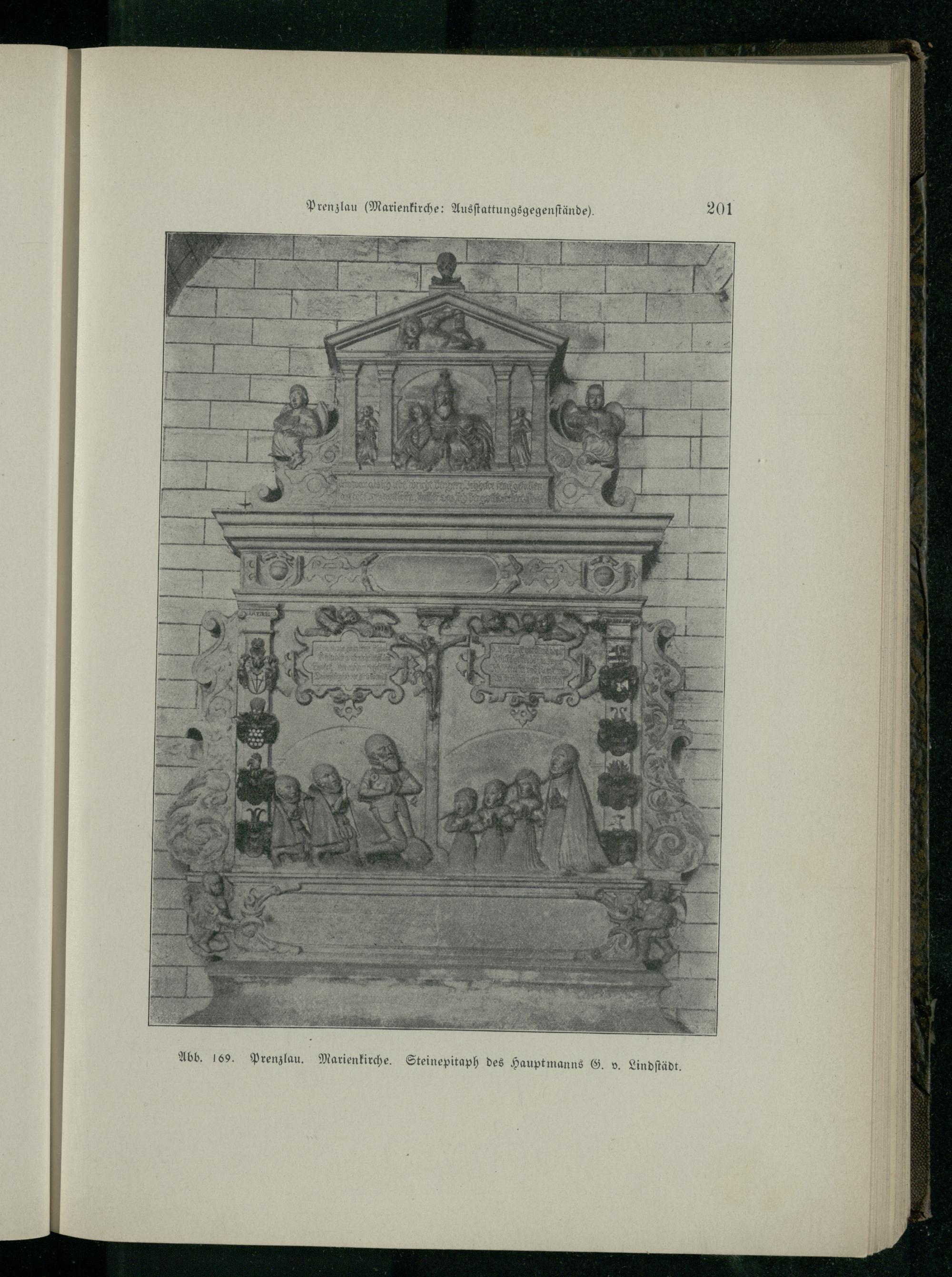 Prenzlau (Marienkirche : Ausſtattungsgegenſtände). 169. Prenzlau . Marienkirche. Steinepitaph des Hauptmanns G. v. Lindſtädt.