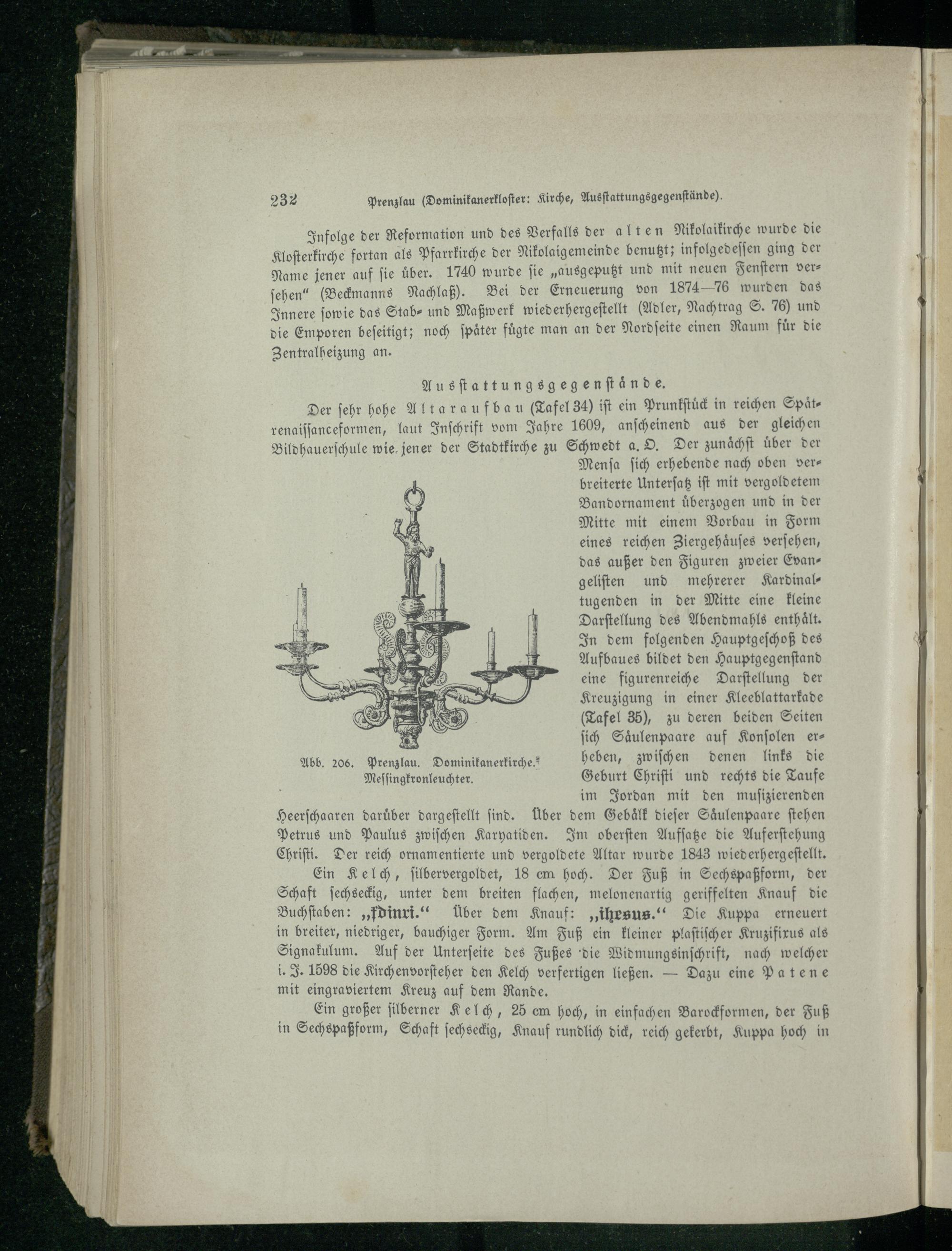 Abb. 206. Prenzlau . Dominikanerkirche. heben, zwiſchen denen links die Meſſingkronleuchter. Geburt Chriſti und rechts die Taufe