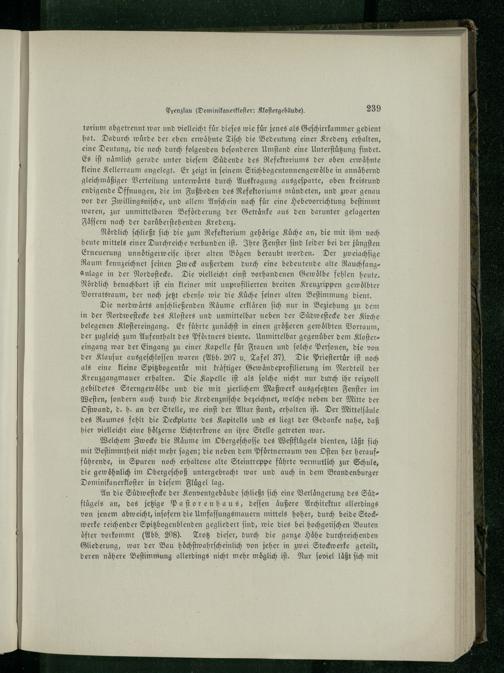 An die Suͤdweſtecke der Konventgebaͤude ſchließt[ih eine Verlängerung des Suͤd— fluͤgels an, das jetzige Pa ſtorenhaus, deſſen äußere Architektur allerdings von jenem abweicht, inſofern die Umfaſſungsmauern mittels hoher, durch beide Stockwerke reichender Spitzbogenblenden gegliedert ſind, wie dies bei hochgotiſchen Bauten oͤfter vorkommt(Abb. 208). Trotz dieſer, durch die ganze Hoͤhe durchreich enden Gliederung, war der Bau hoͤchſtwahrſcheinlich von jeher in zwei Stockwerke geteilt, deren nähere Beſtimmung allerdings nicht mehr möglich iſt. Nur ſoviel laͤßt ſich mit