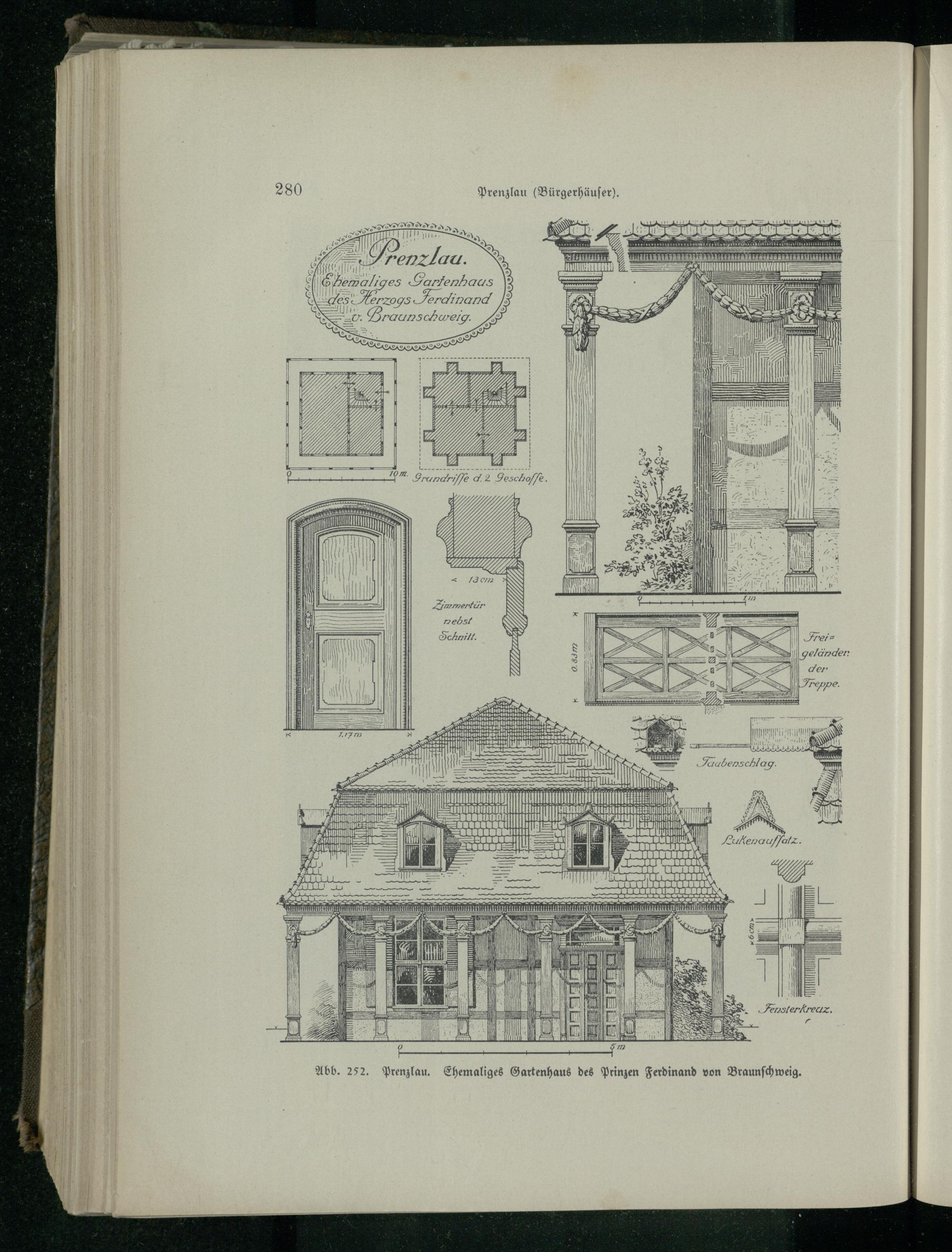 Prenzlau (Bürgerhäuſer). 2229 8 222 HT 2s) SAME ; 6, Demaliges Gartenhaus 2 des Herzogs JSerdinand. 8 Ef Braunschweig .. i ö l Ou meln nebst 8. d IM 8 Al= Schill. N. Tl DD: 8 eie ;| ‚geldänder SA Fensterkreaz, ;s Abb. 252. Prenzlau. Ehemaliges Gartenhaus des Prinzen Ferdinand von Braunſchweig .
