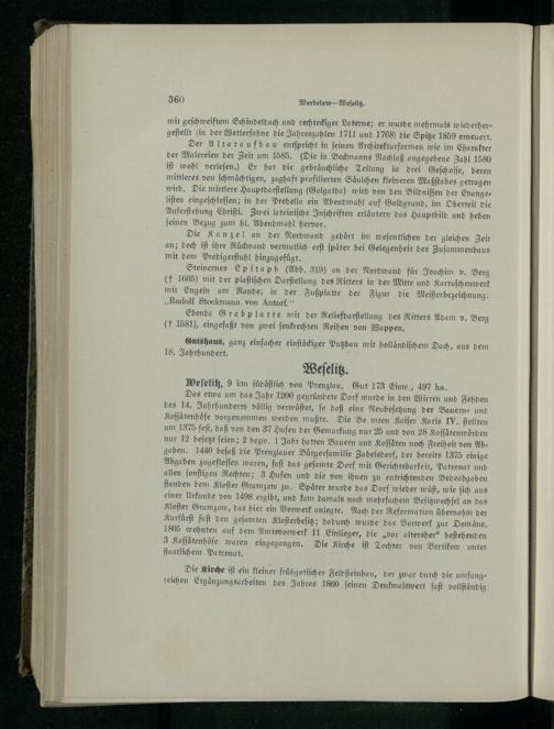 Steinernes Epitaph(Abb. 319) an der Nordwand fuͤr Joachim v. Berg (5 1605) mit der plaſtiſchen Darſtellung des Ritters in der Mitte und Kartuſchenwerk mit Engeln am Rande; in der Fußplatte der Figur die Meiſterbezeichnung: „Rudolf Stockmann von Antorf .“