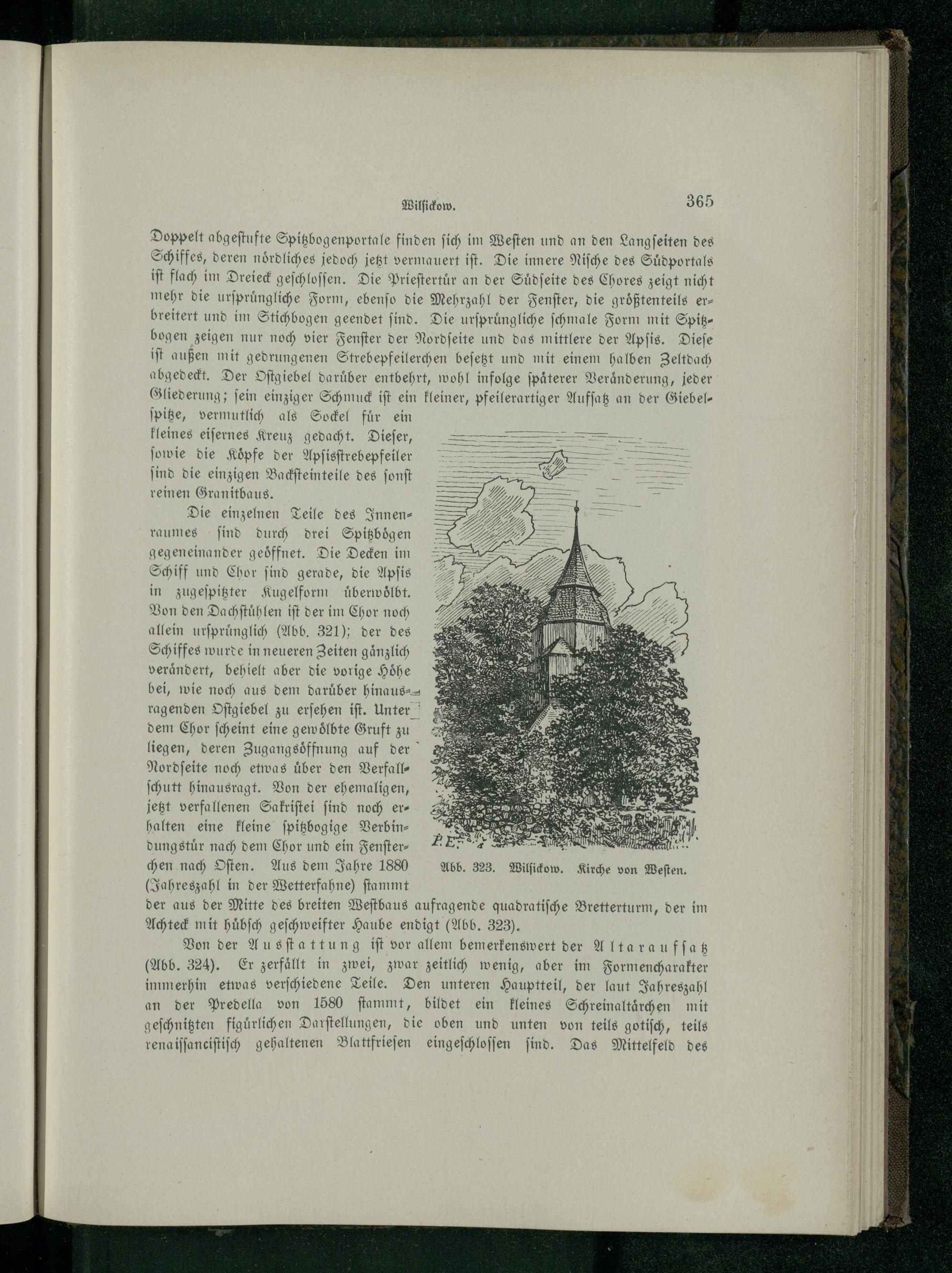 chen nach Oſten. Aus dem Jahre 1880 Abb. 323. Wilſickow. Kirche von Weſten. Jahreszahl in der Wetterfahne) ſtammt
