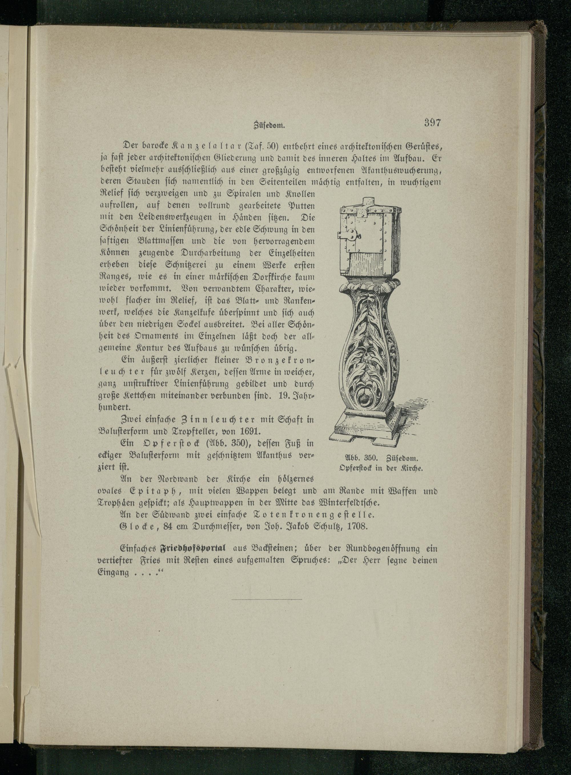 Ein Op ferſtock(Abb. 350), deſſen Fuß in eckiger Baluſterform mit geſchnitztem Akanthus verziert iſt..