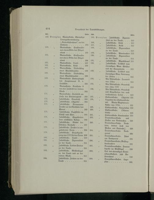 mit Maria⸗Magdalenen— kloſter von 1754. 2 Sabinenkirche. Kanzelaltar 22% Sabinenkirche. Oblaten— büchſe Kö Sabinenkirche. Kronleuchter Dominikanerkirche und Kloſter von Nordweſten Dominikanerkirche. Nord— ſeite, drittes Joch von Weſten mit Baunaht. Dominikanerkirche. Nord— portal ö Dominikanerkirche. Fries am Nordportal.... Dominikanerkirche. Meſſingen, 2. 289 Dominikanerkloſter. Frauen: kapelle im Weſtflügel.. 238 Teil des ehemaligen Domi— nikanerkloſters, jetzt Pa— ,,, 66 Franziskanerkloſter. Lageß,.