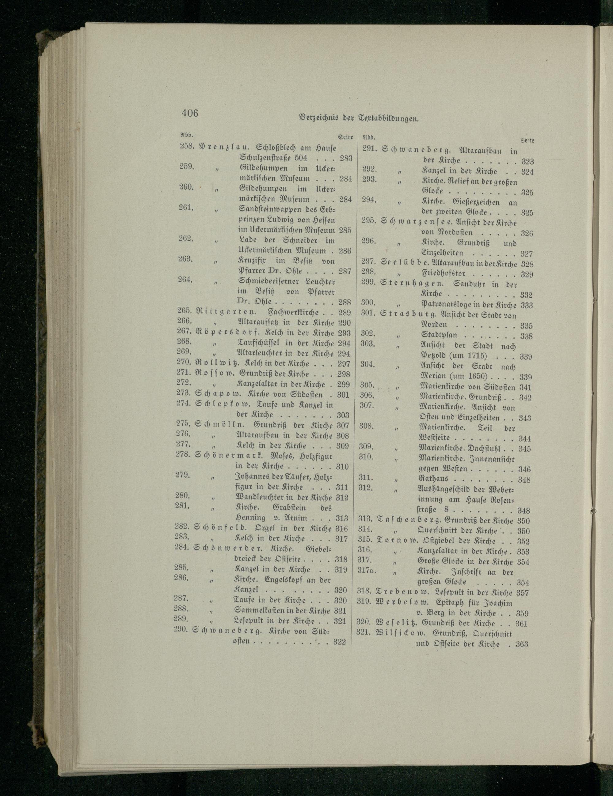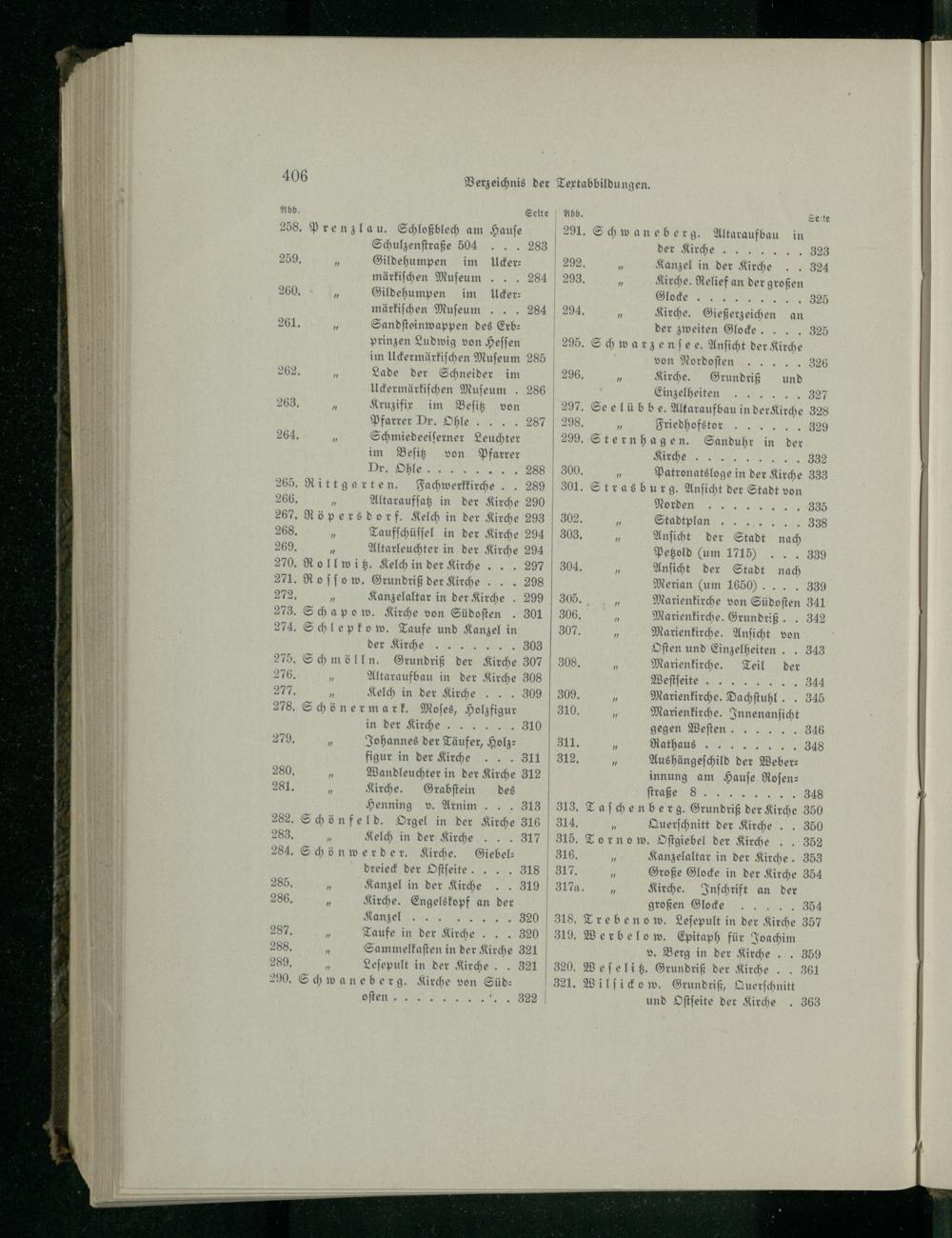 275. Schmölln . Grundriß der Kirche 307 276. Altaraufbau in der Kirche 308 277. Kelch in der Kirche... 309 278. Schönermark. Moses, Holzfigur