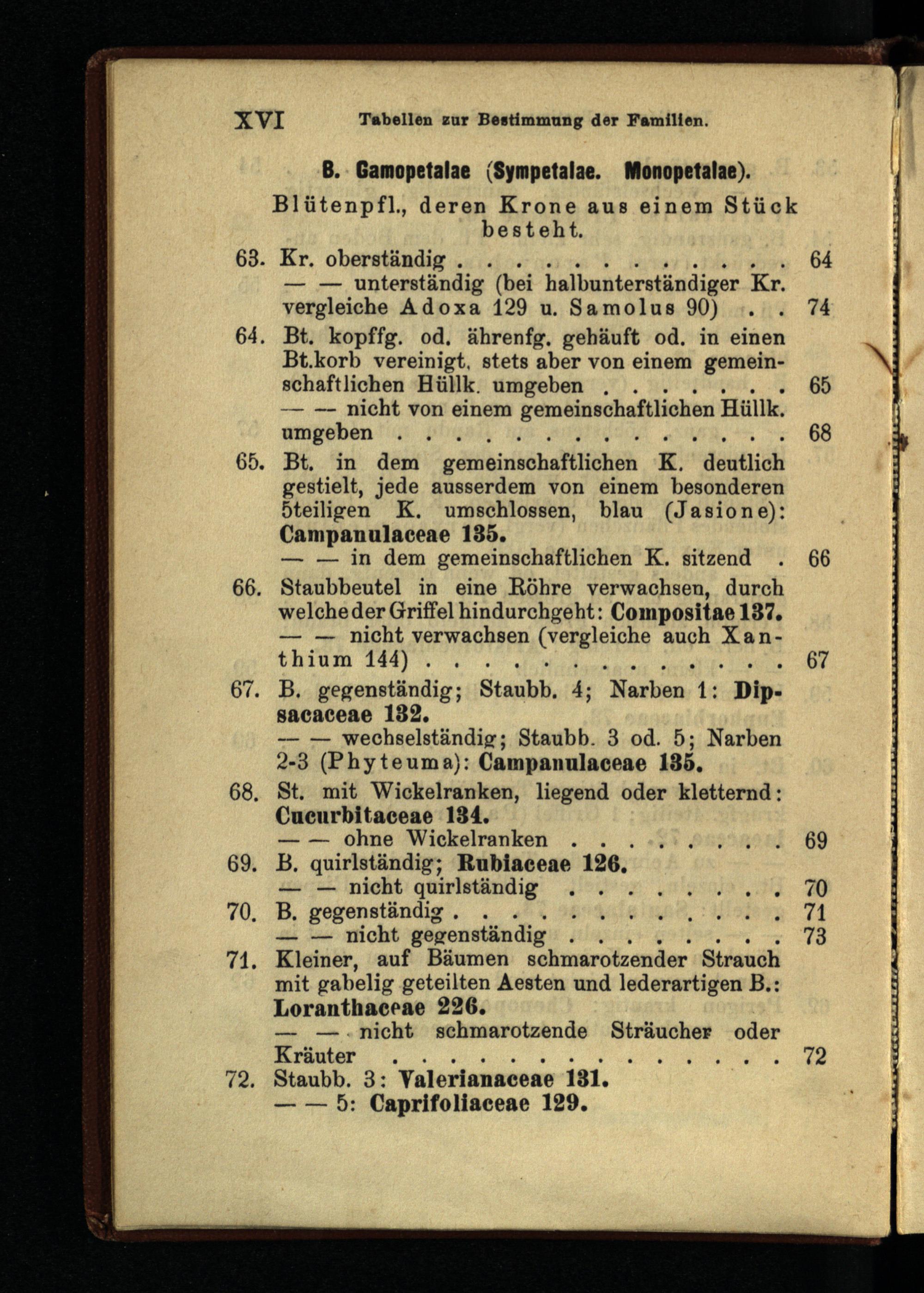 66. Staubbeutel in eine Röhre verwachsen, durch welche der Griffel hindurchgeht: Compositae 137.