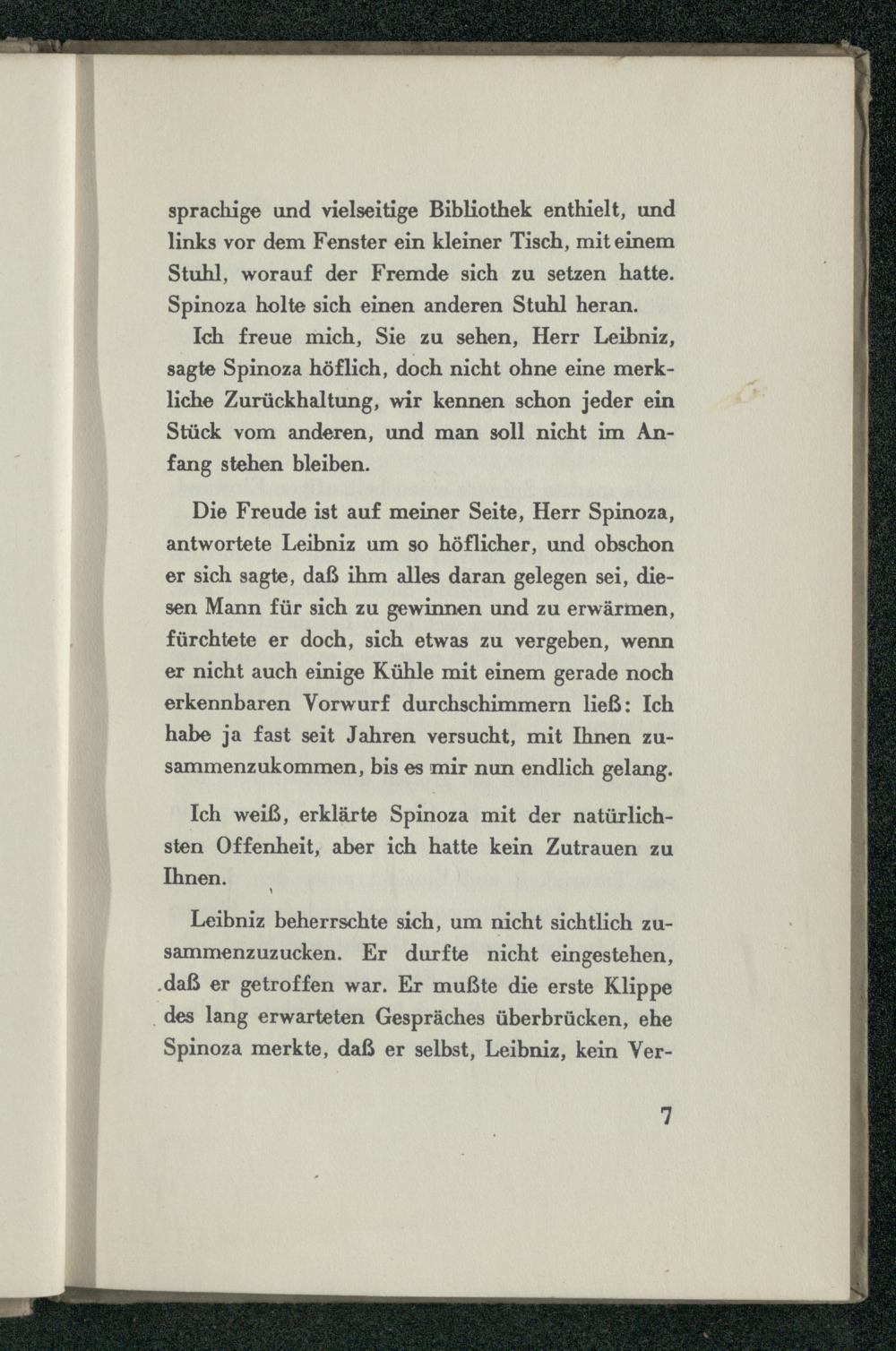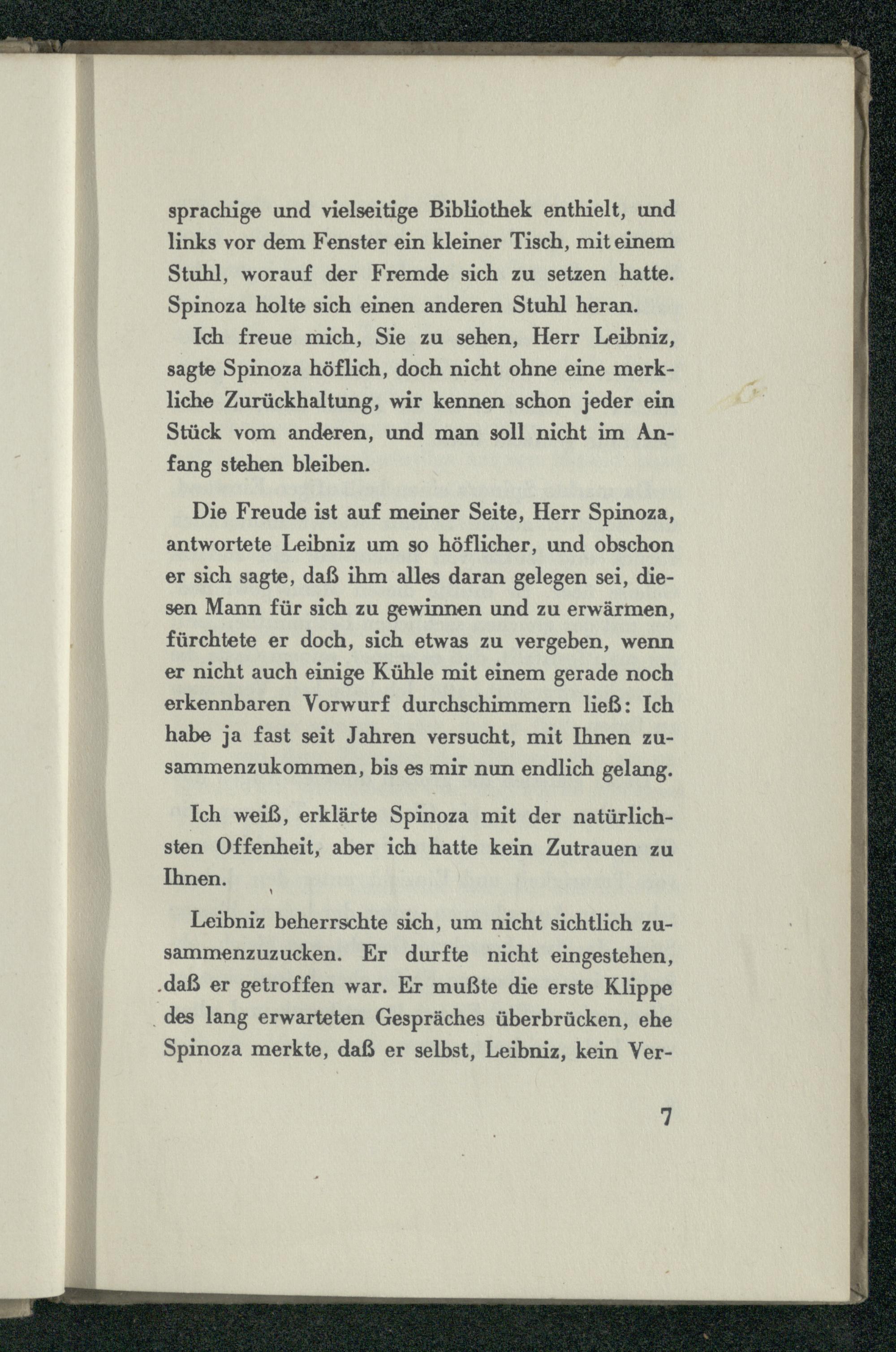 Ich freue mich, Sie zu sehen, Herr Leibniz , sagte Spinoza höflich, doch nicht ohne eine merkliche Zurückhaltung, wir kennen schon jeder ein Stück vom anderen, und man soll nicht im Anfang stehen bleiben.