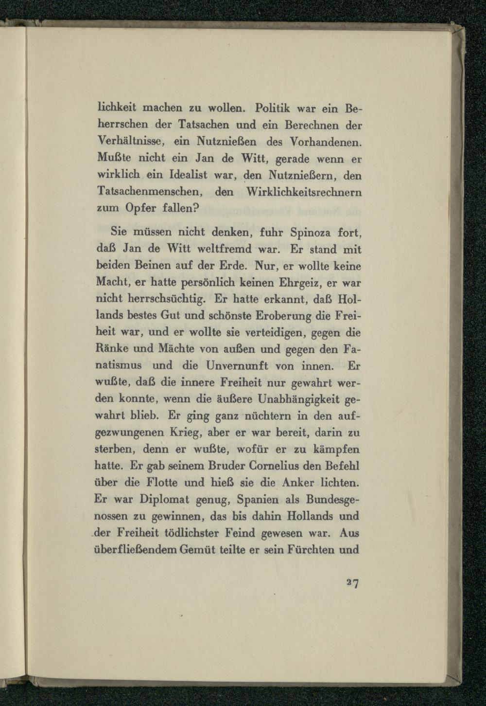 lichkeit machen zu wollen. Politik war ein Beherrschen der Tatsachen und ein Berechnen der Verhältnisse, ein Nutznießen des Vorhandenen. Mußte nicht ein Jan de Witt , gerade wenn er wirklich ein Idealist war, den Nutznießern, den Tatsachenmenschen, den Wirklichkeitsrechnern zum Opfer fallen?