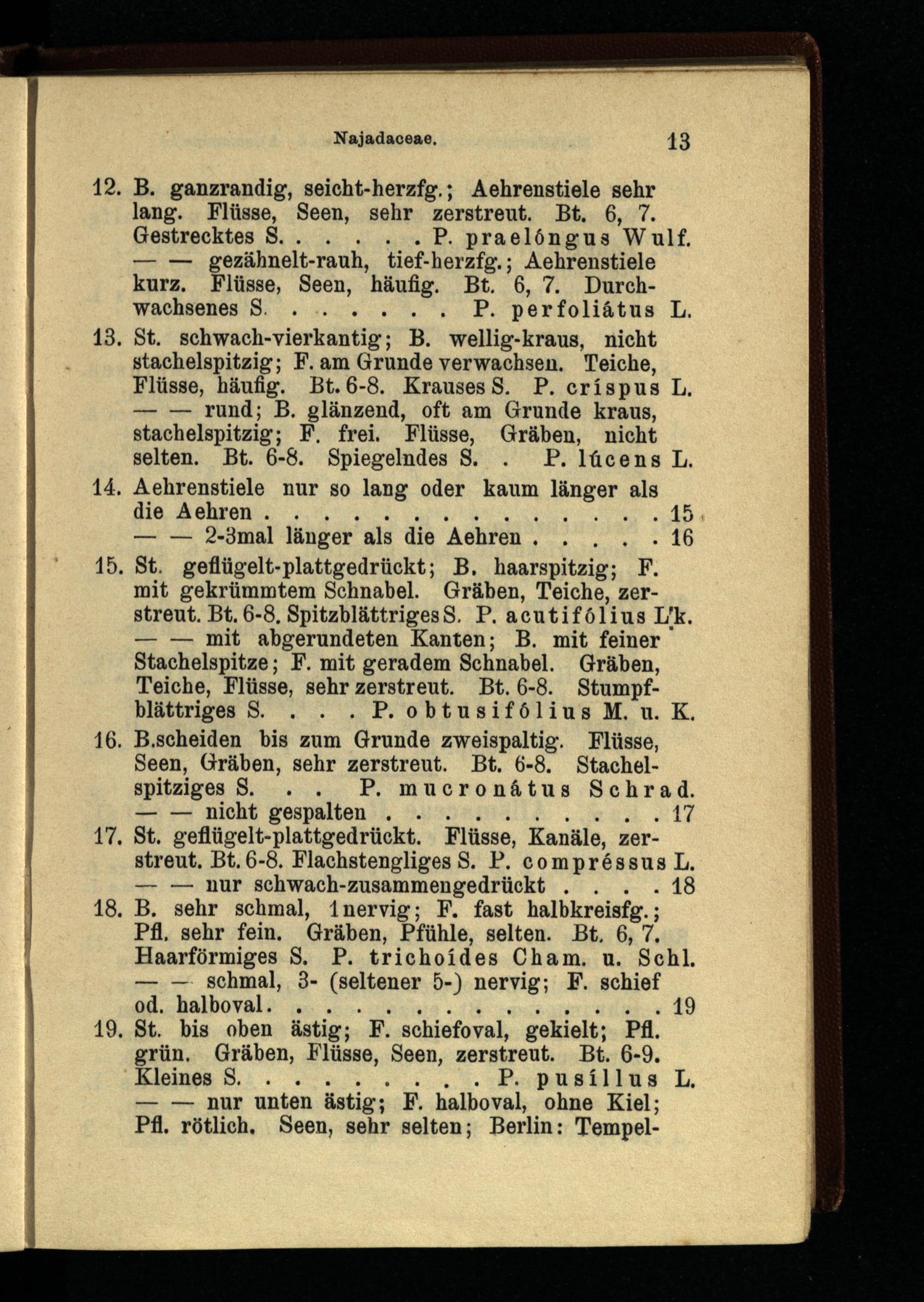 17. St. geflügelt-plattgedrückt. Flüsse, Kanäle, zerstreut. Bt. 6-8. Flachstengliges S. P. compressus L. -nur schwach-zusammengedrückt .... 18