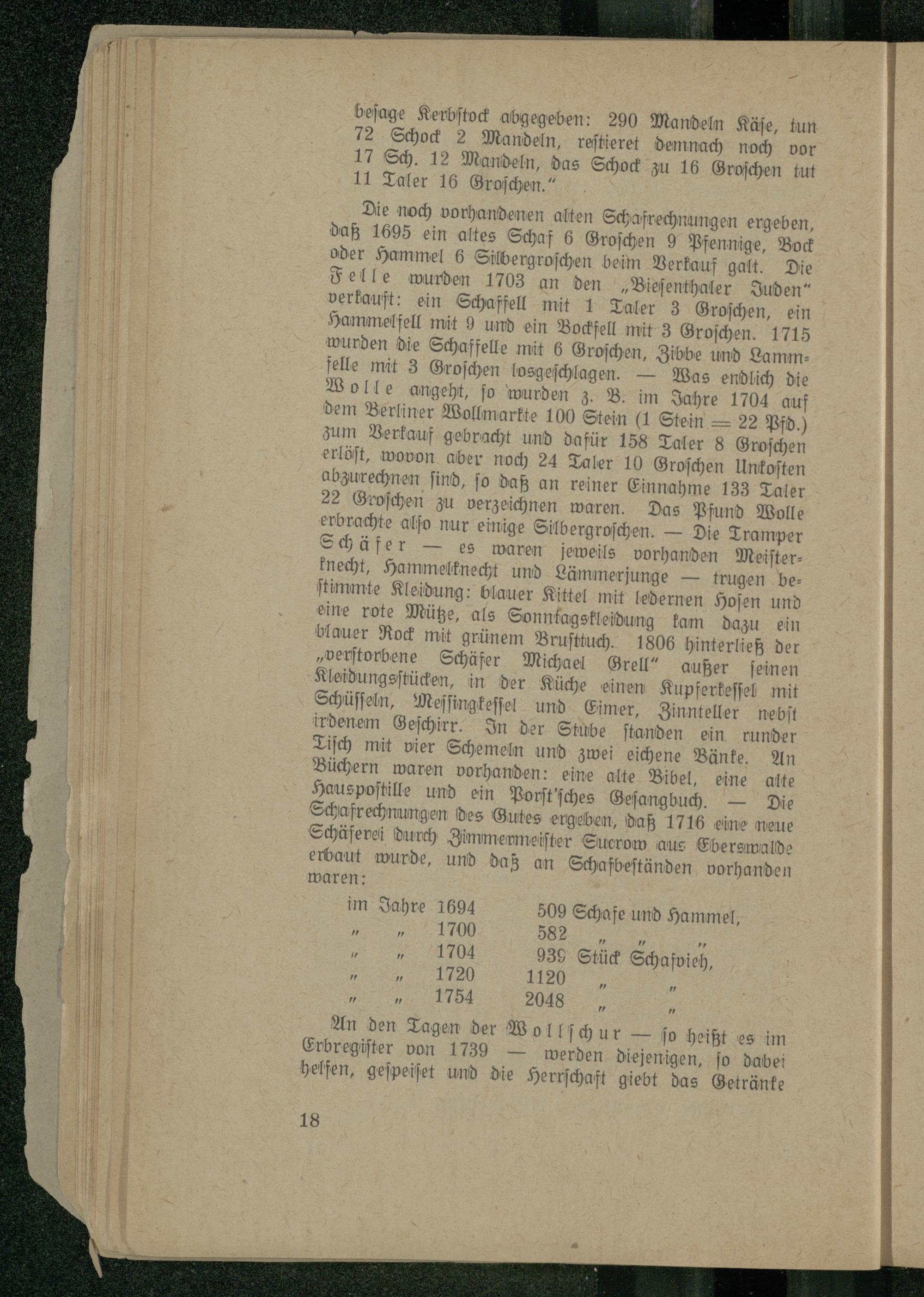 im Jahre 1694 509 Schafe und Hammel, .. 1700 582. ö ö x ö 1704 939 Stück Schafvieh,
