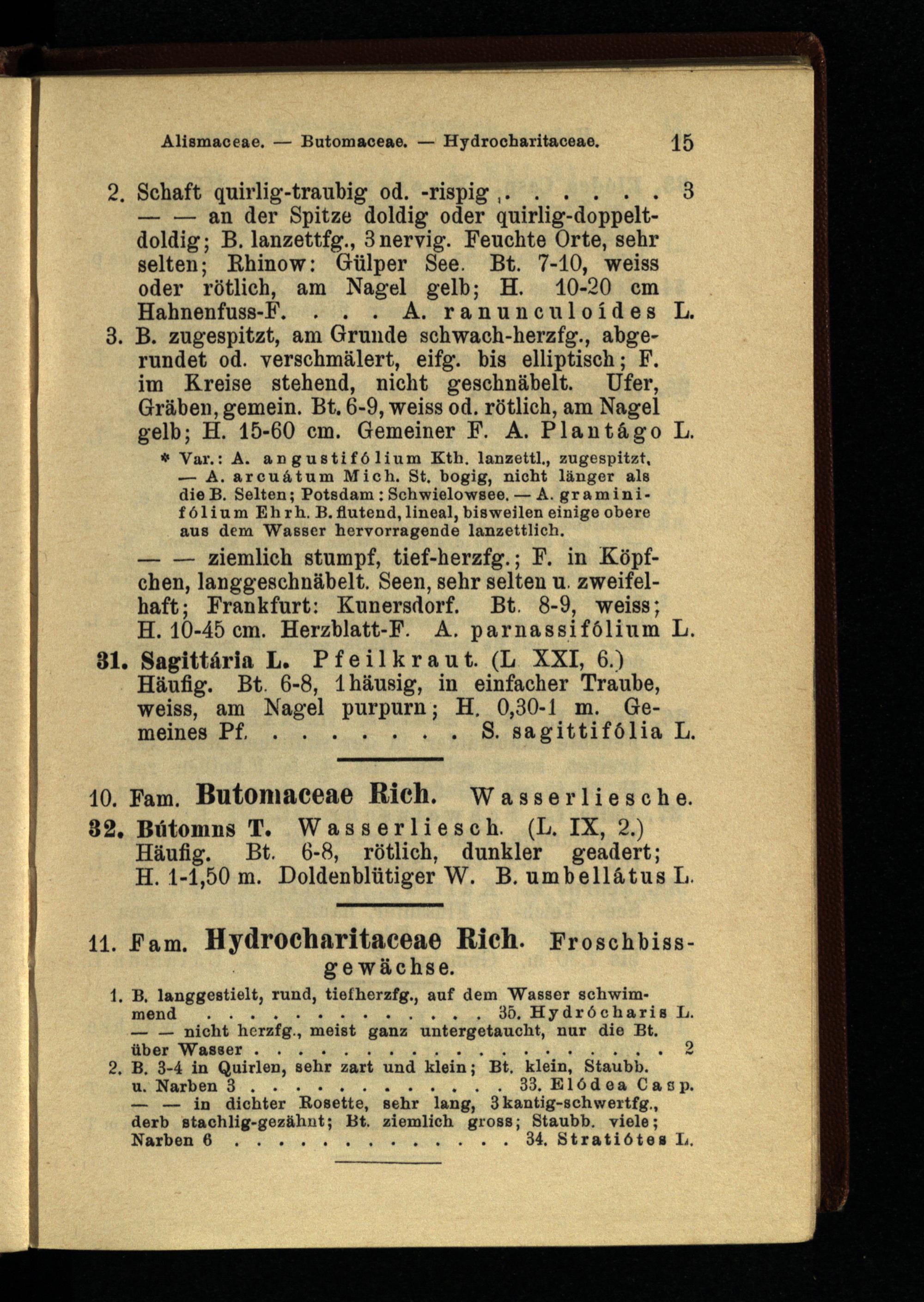 11. Fam. Hydrocharitaceae Rieh. Froschhissgewächse.