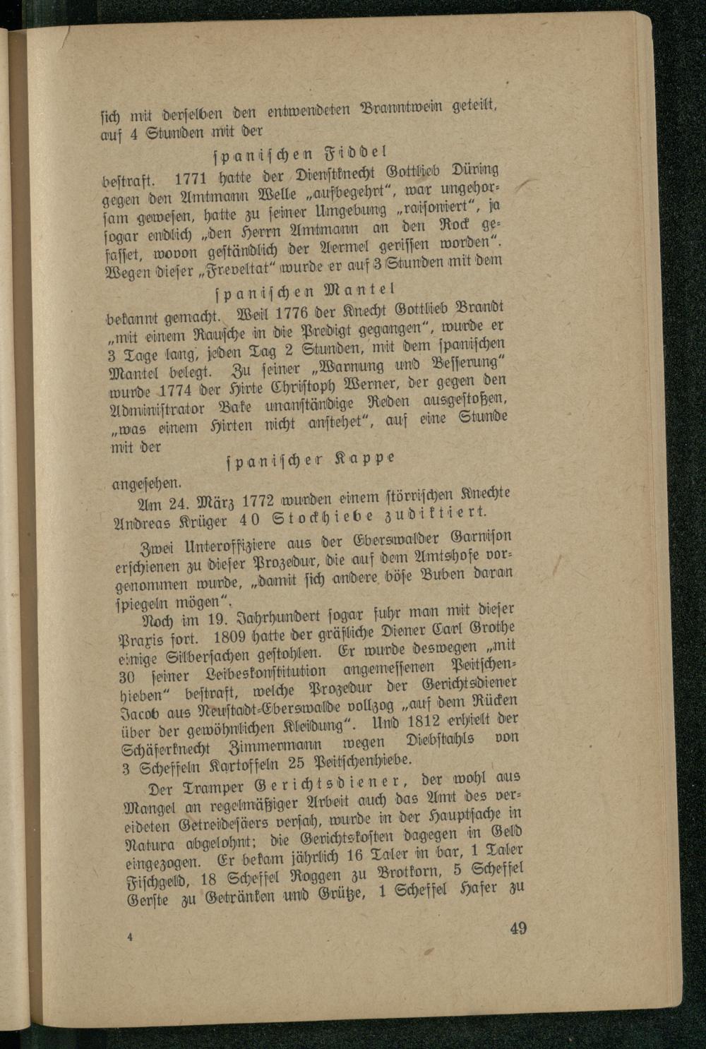 ſpaniſchen Mantel bekannt gemacht. Weil 1776 der Knecht Gottlieb Brandt „mit einem Rauſche in die Predigt gegangen“, wurde er 3 Tage lang, jeden Tag 2 Stunden, mit dem ſpaniſchen Mantel belegt. Zu ſeiner„Warnung und Beſſerung! wurde 1774 der Hirte Chriſtoph Werner, der gegen den Adminiſtrator Bake unanſtändige Reden ausgeſtoßen, „was einem Hirten nicht anſtehet“, auf eine Stunde mit der