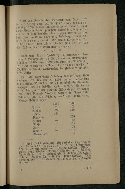 1800 hatte Dorf Heckelberg 149 Einwohner, darunter 1 Lehnſchulzen, 15 Ganzbauern, 4 Ganzkoſſäten, 3 Büdner, 2 Einlieger, Schmiede, Krug und Windmühle. „Der Ort iſt ehedem ein M arktflecken geweſe ö Gezählt wurden 32 Feuerſtellen, die Feldmark umfaßte 67 1/2 Hufen.