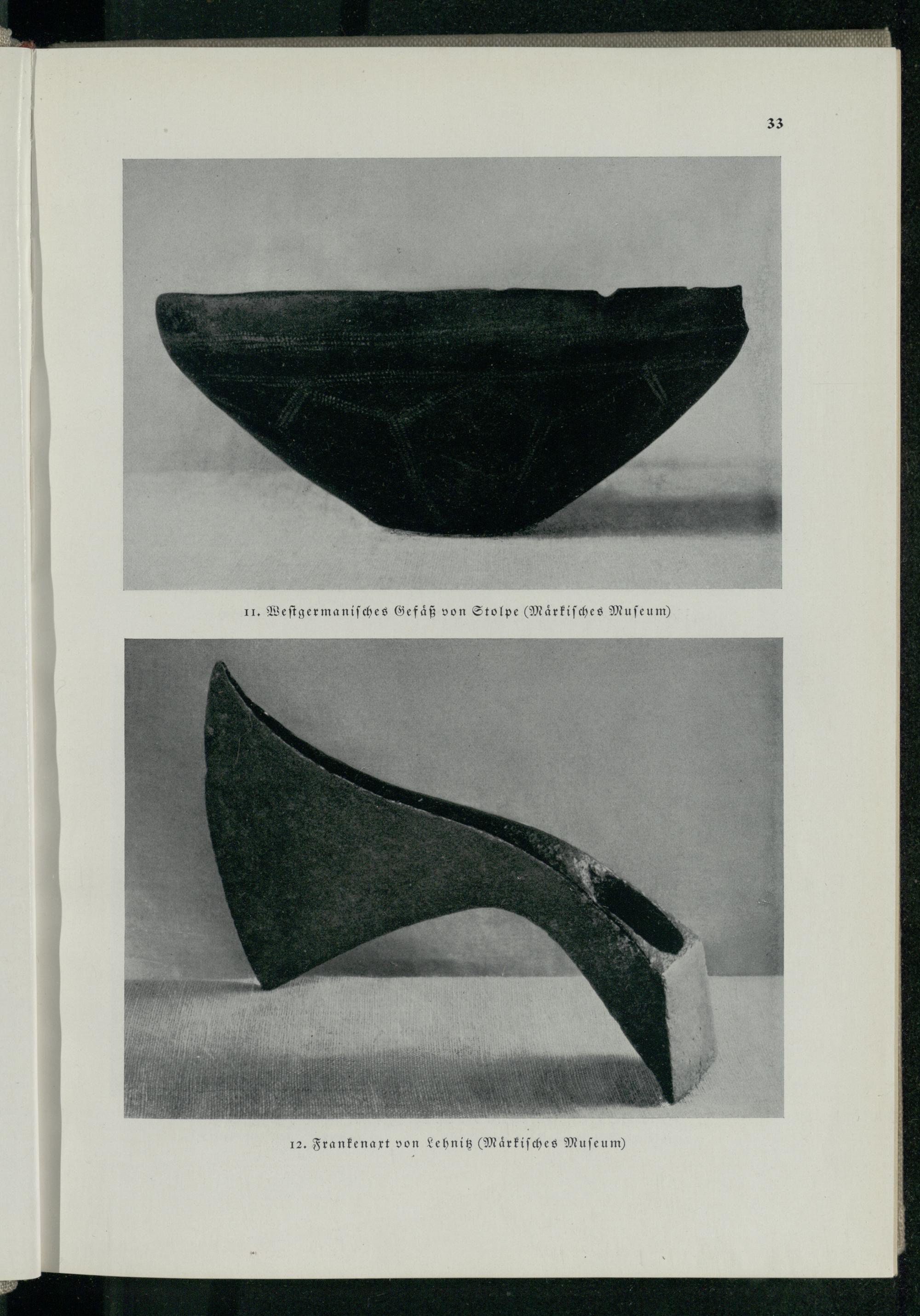 11. Westgermanisches Gefäß von Stolpe( Märkisches Museum) 12. Frankenart von Lehnis( Märkisches Museum) 33